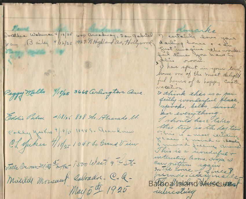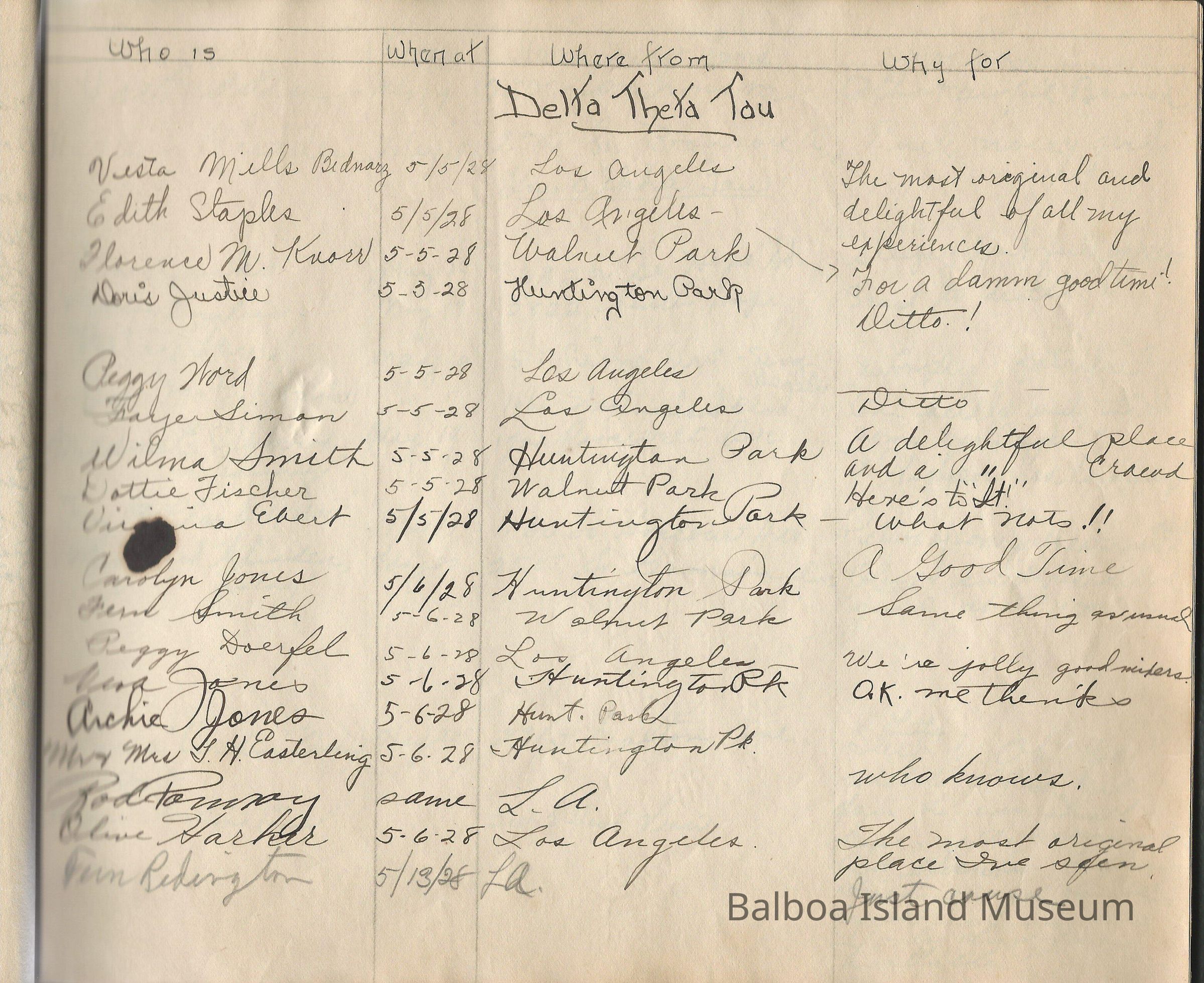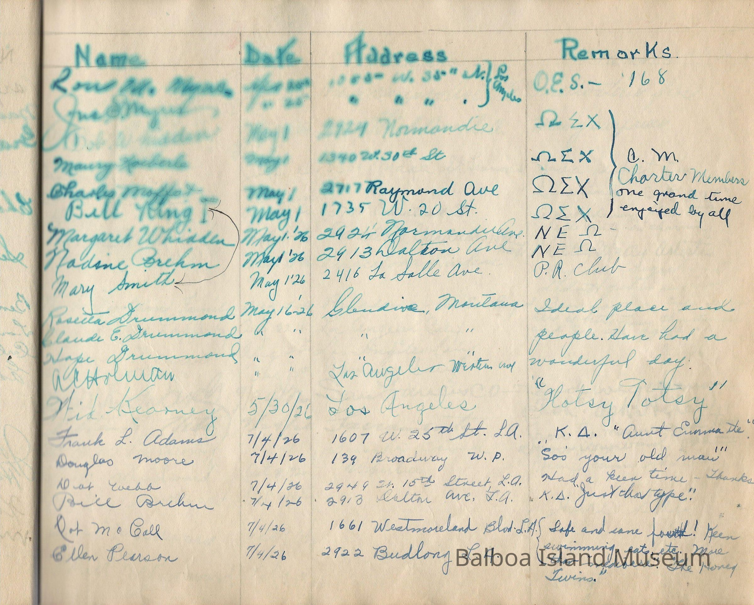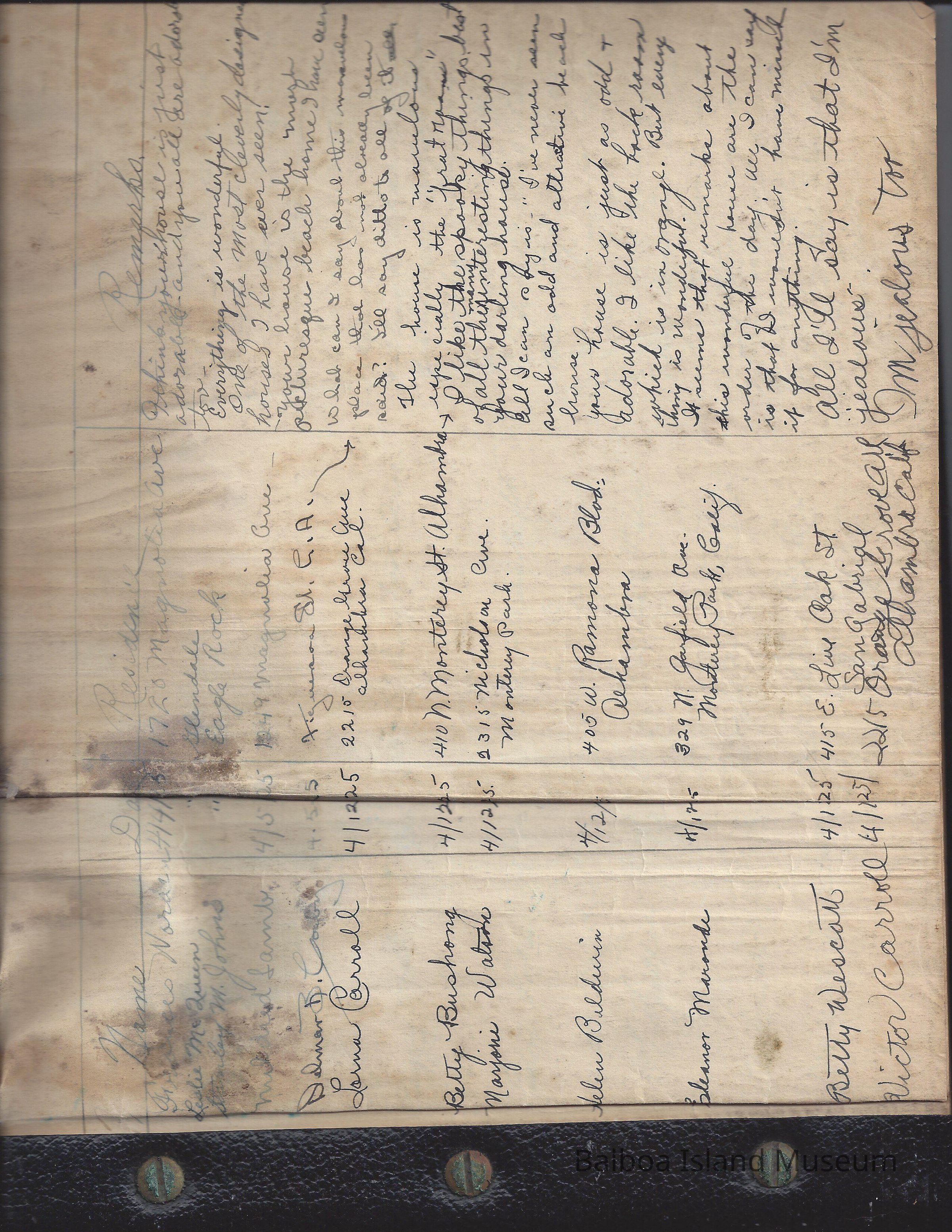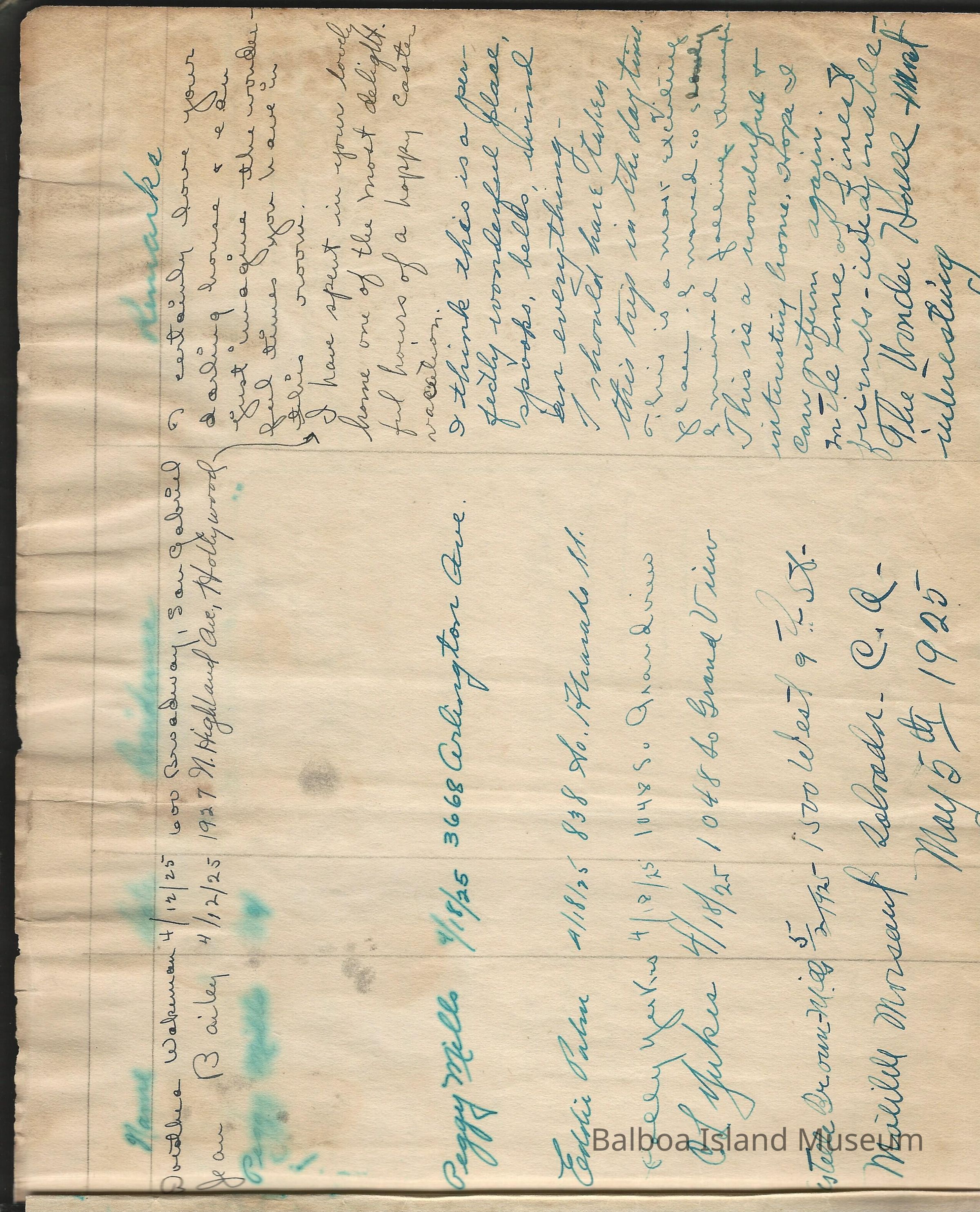 Log book showing visitor comments to the Lighthouse at 901 North Bay Front - 1925 to 1932