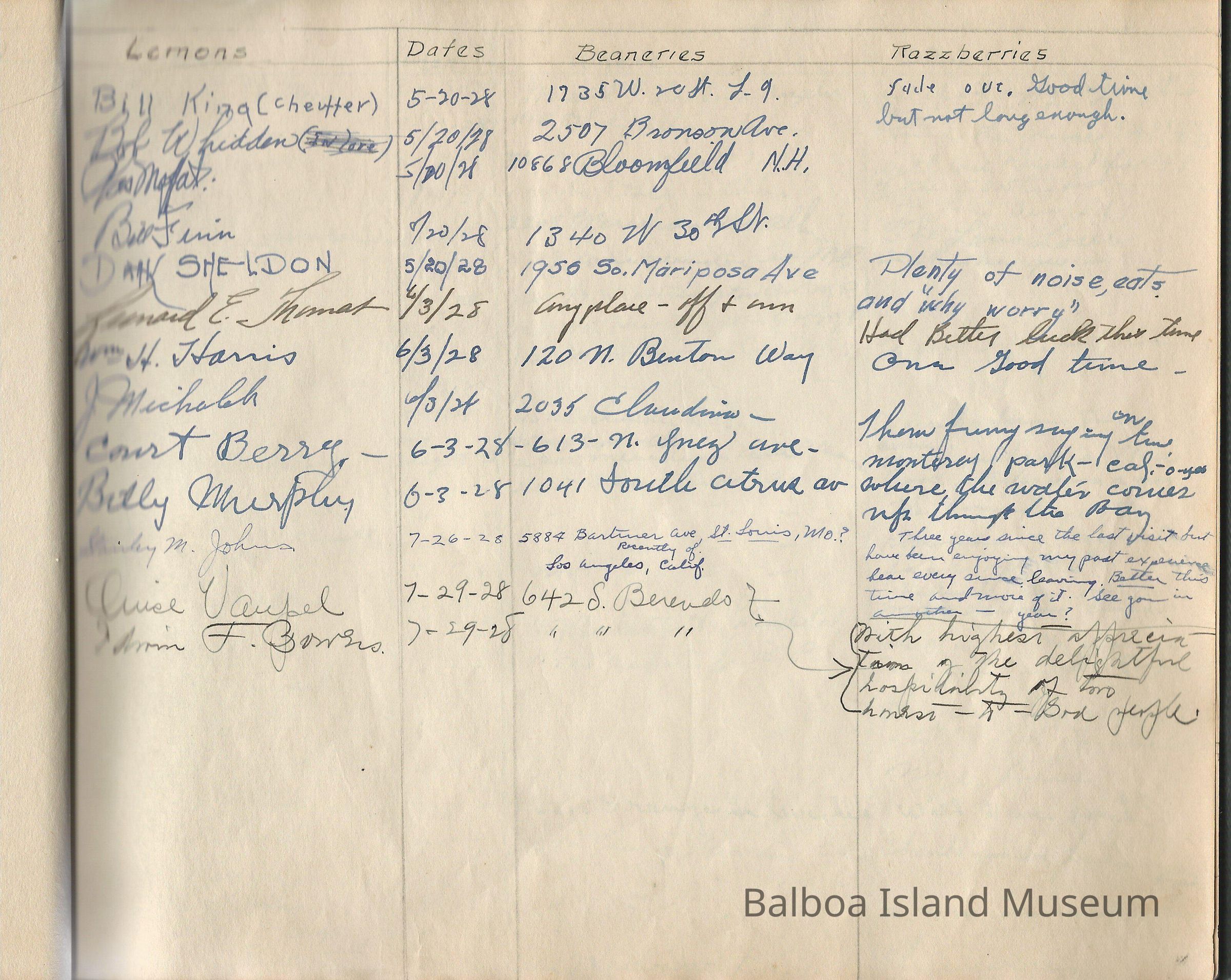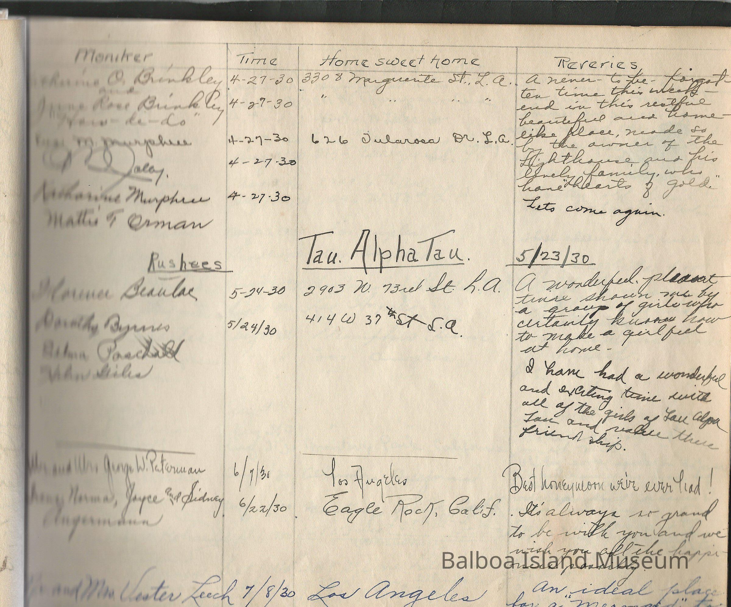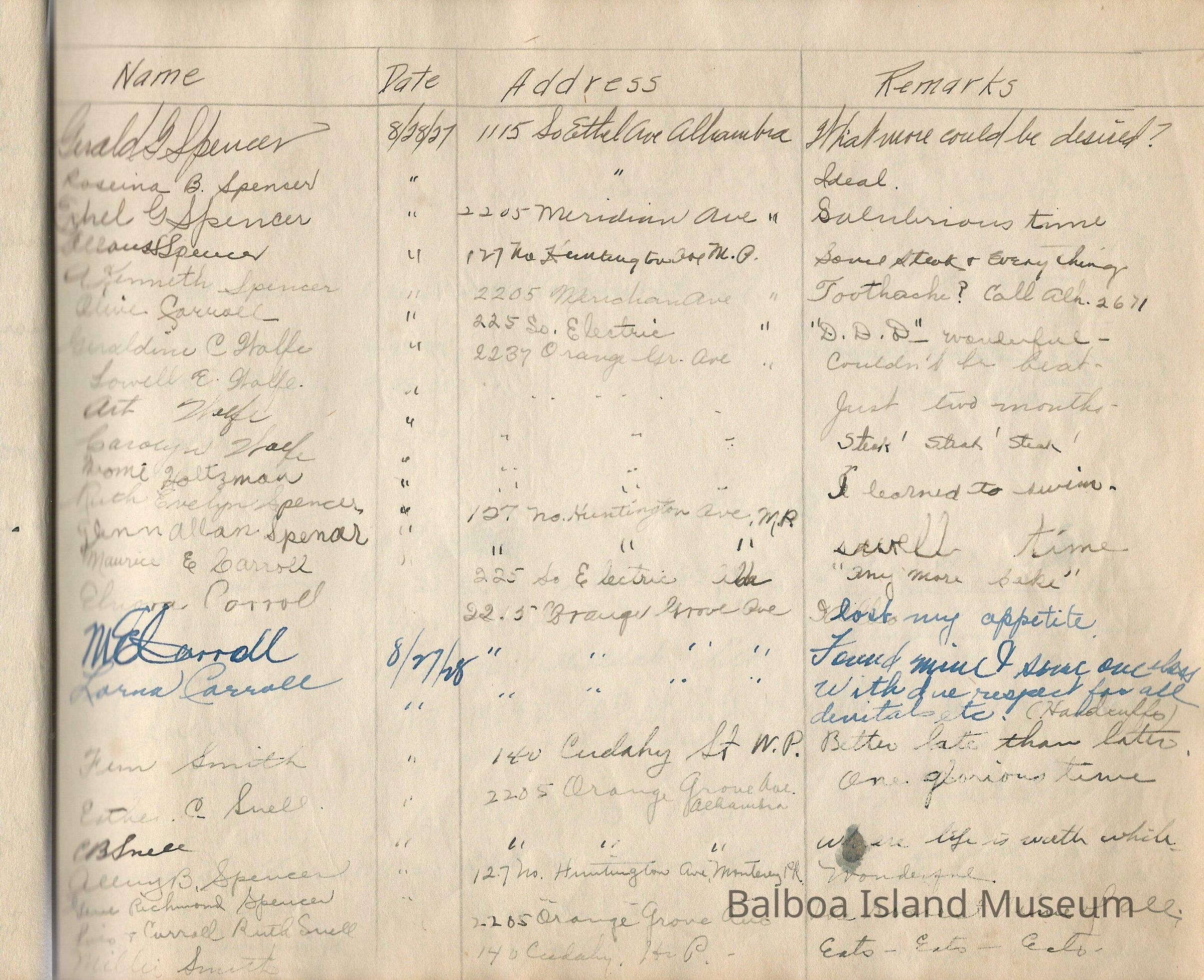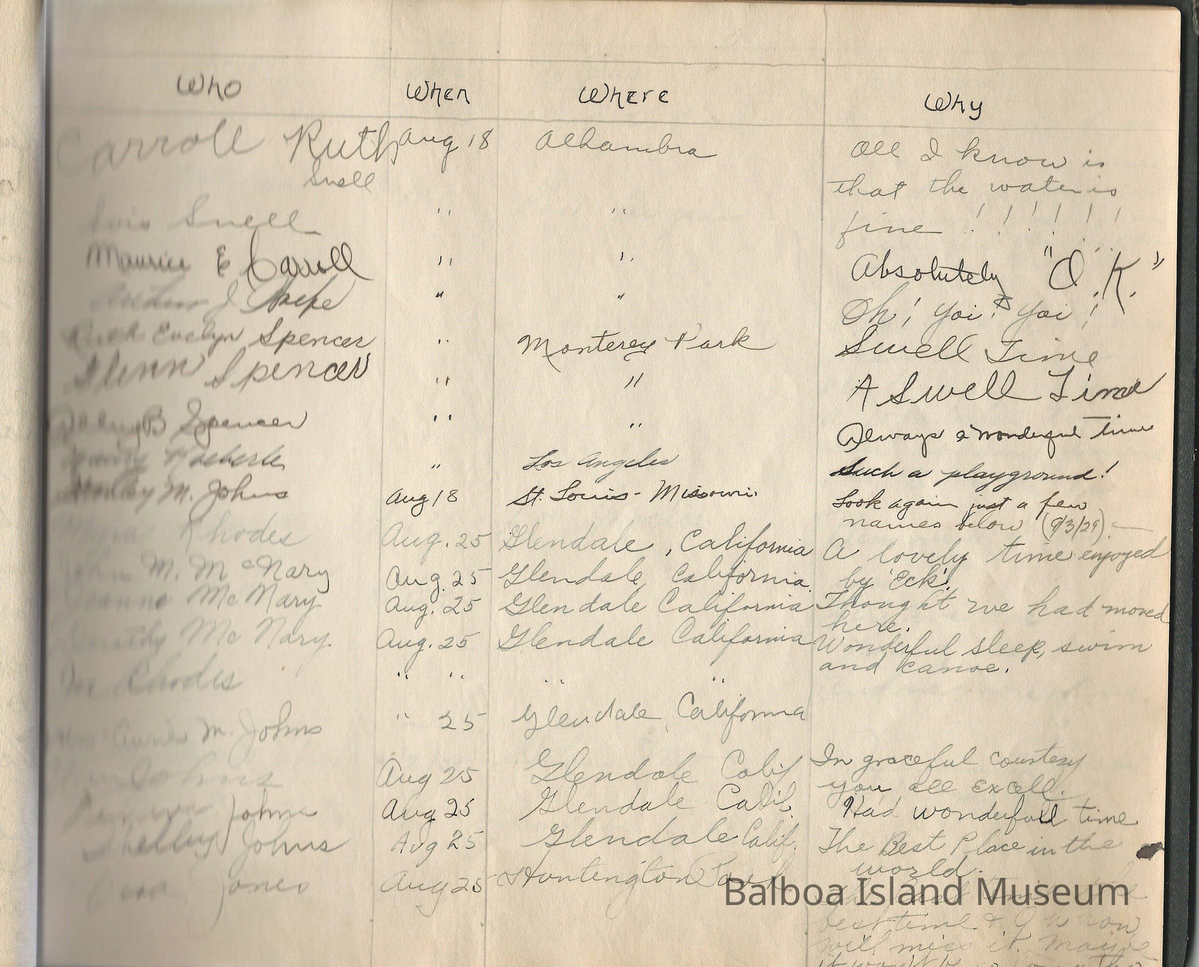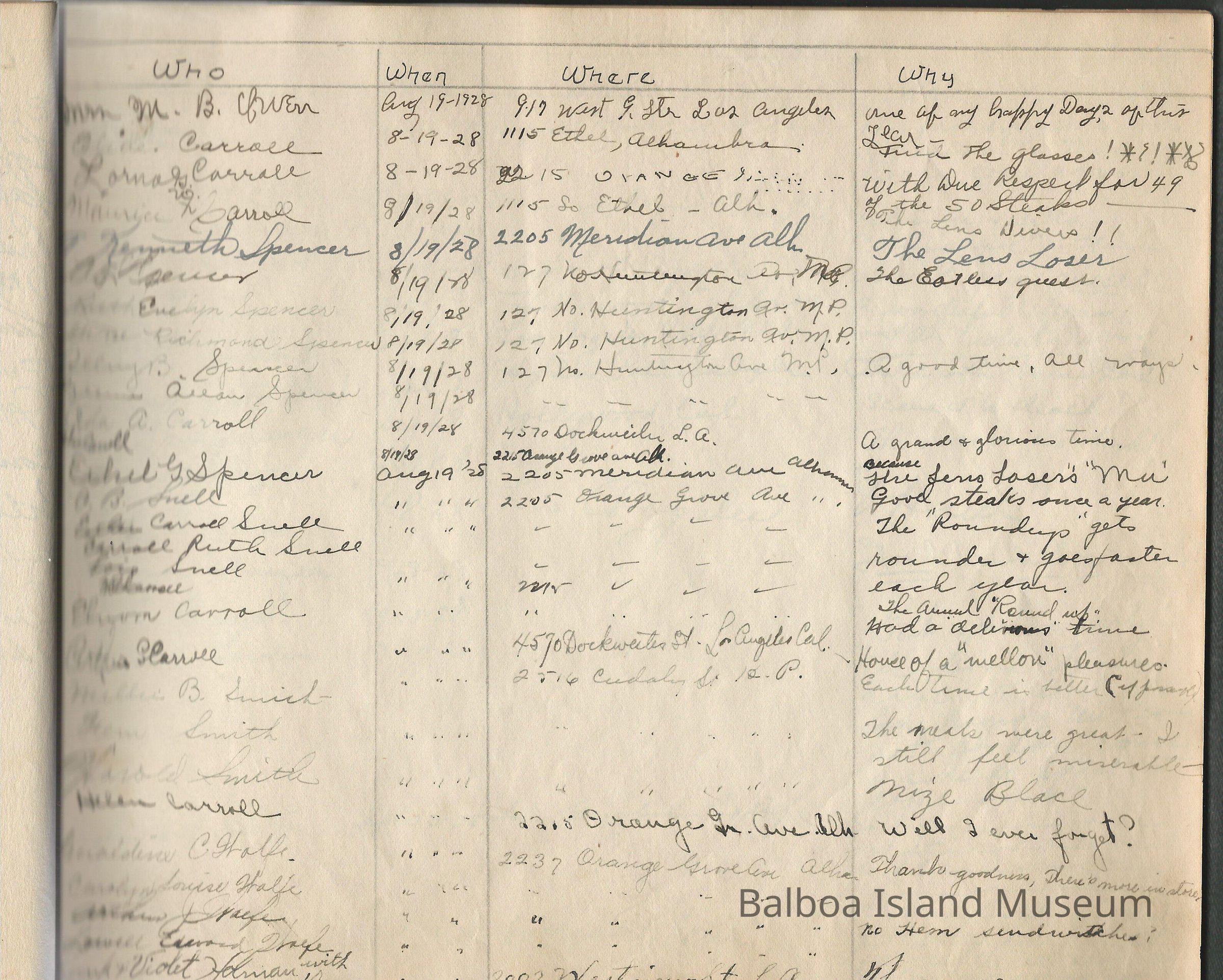 Log book showing visitor comments to the Lighthouse at 901 North Bay Front - 1925 to 1932