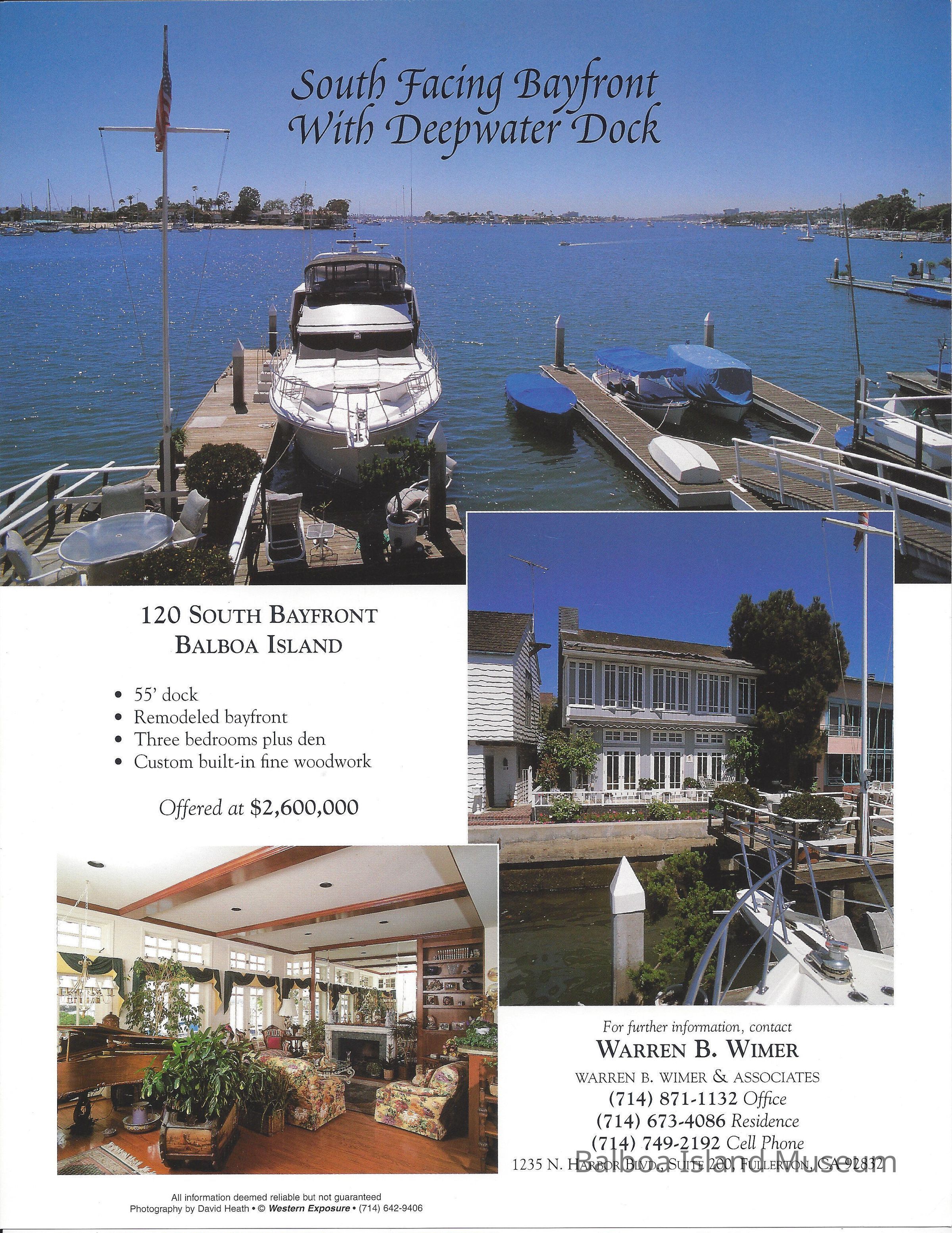 Real Estate brochure with color photo of home at 120 South Bay Front.Lexicon