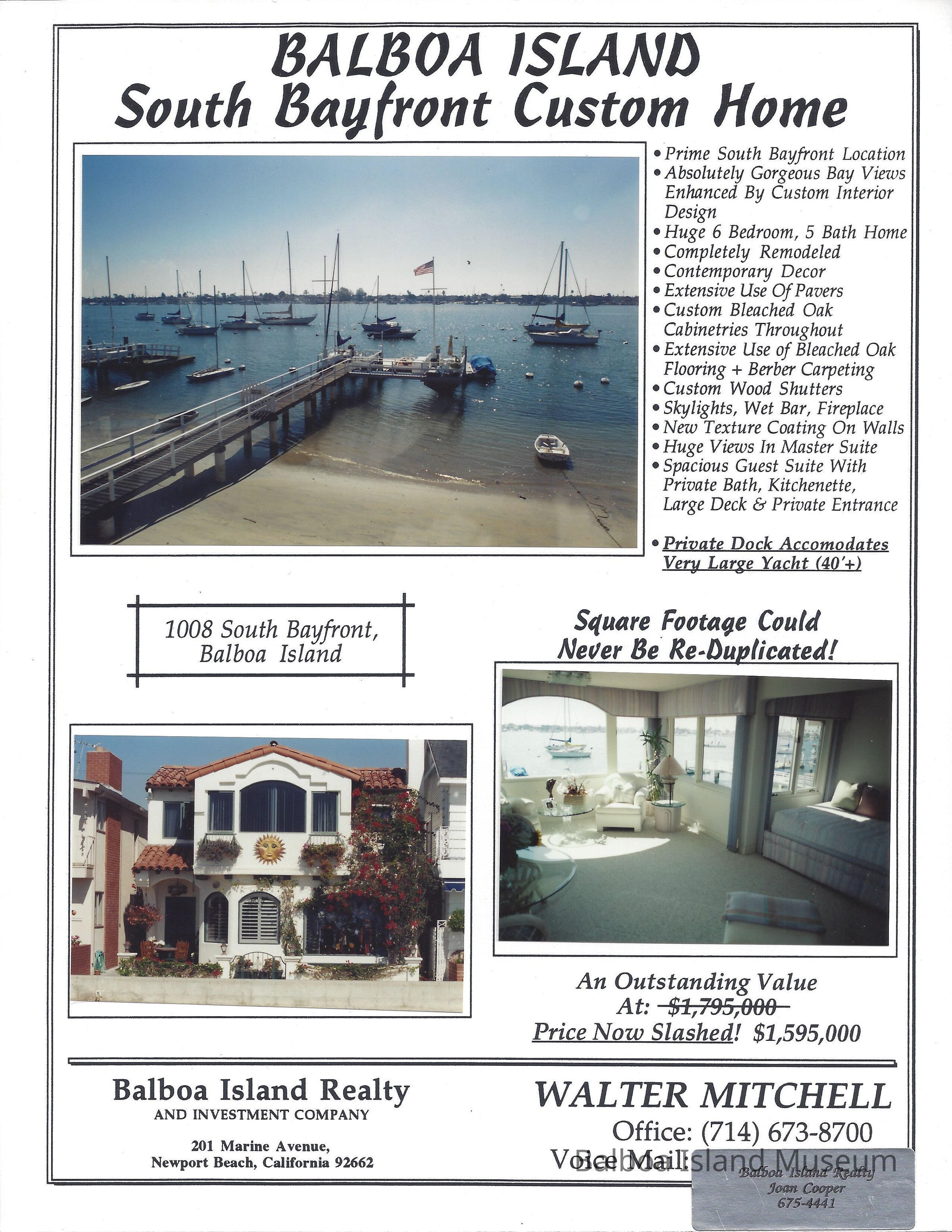 Real Estate brochure with color photo of home at 1008 South Bayfront.Lexicon