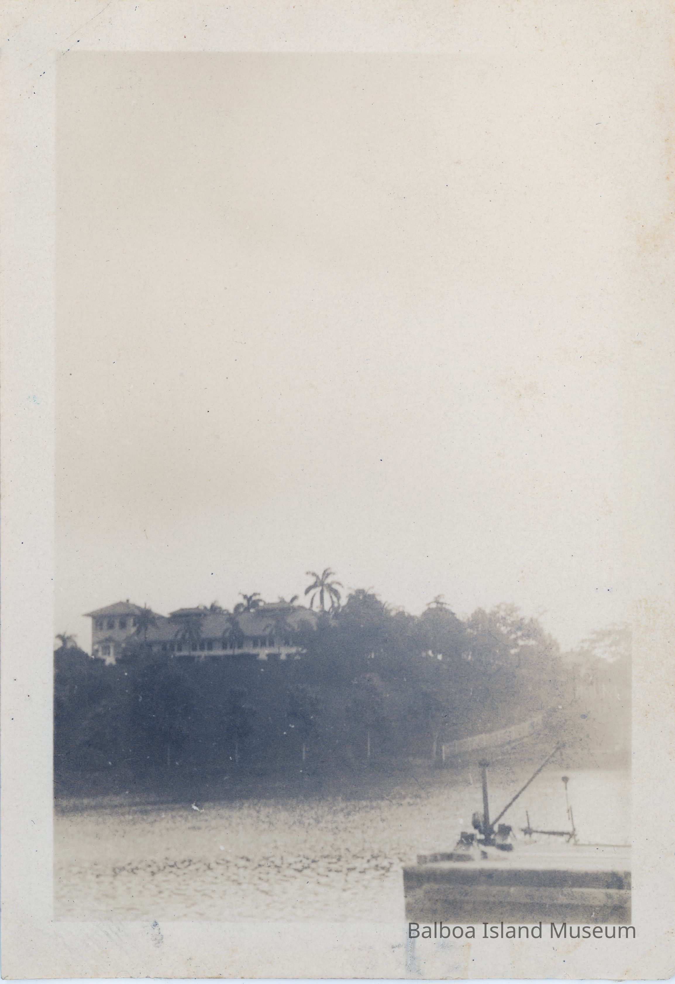 Photograph with a very large house on the hill and a dock down below up close to the shotPhotograph Details