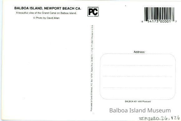 Unused. Published by Postcards & Cards Unlimited, photographed by David Allen. Postcard number Balboa 401. 4x6 postcardSubject