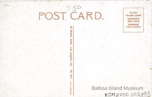 Unused. Divided back. Published by M. Rieder in Los Angeles, California. Postcard number 3411. Made in Germany. Stamp box has a solid border with "Place Stamp Here Domestic One Cent Foreign Two Cents" inside.Subject