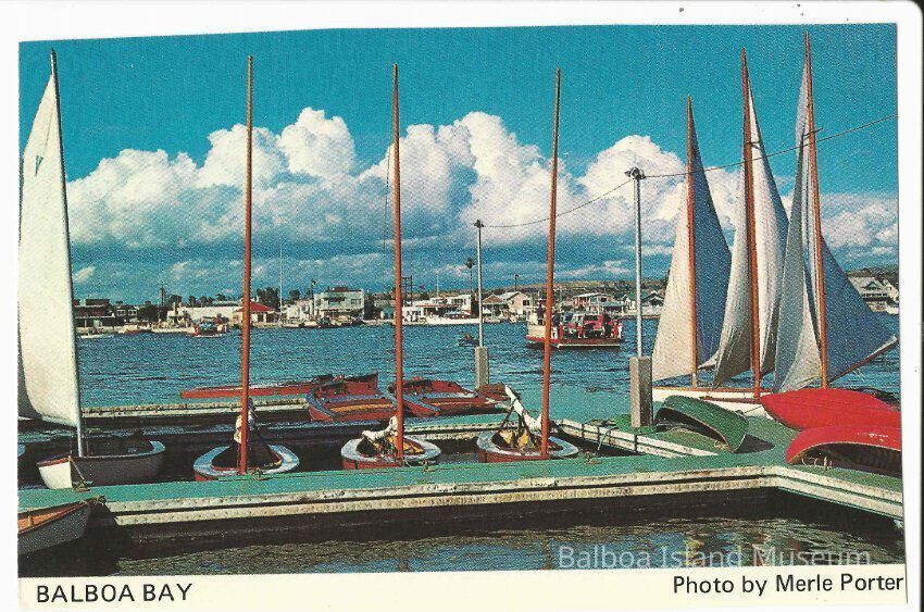 Balboa Island is one of several that is located in Balboa Bay. The island is covered with homes whose owners have the largest pleasure fleet of boats on the Pacific Coast. Hundreds of motor and sailboats dot the lagoon-like bay. The bay was formed by the waters from the Santa Ana River. By 1915 so much silt had been washed into the bay that the river channel was changed to empty into the ocean forth of Newport Beach. the bay was an important commercial port from 1872 to 1898... M. P. (Perle Porter)