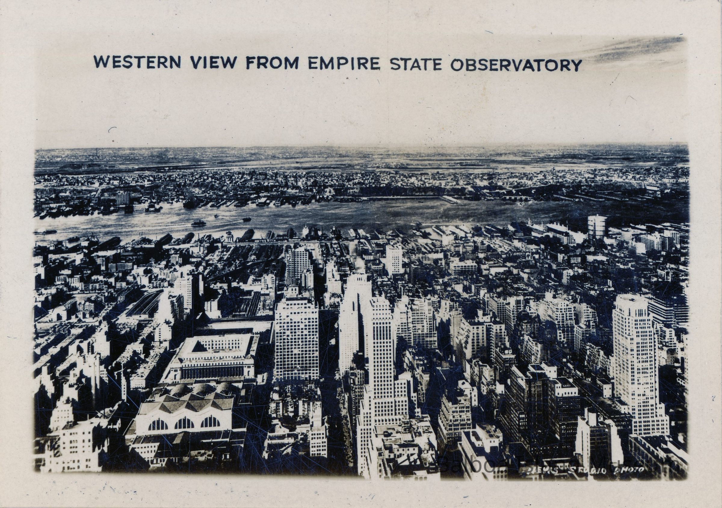 postcard style photo of view from the Empire State Building in black and white but its not like a postcard exactly because it has noPhotograph Details