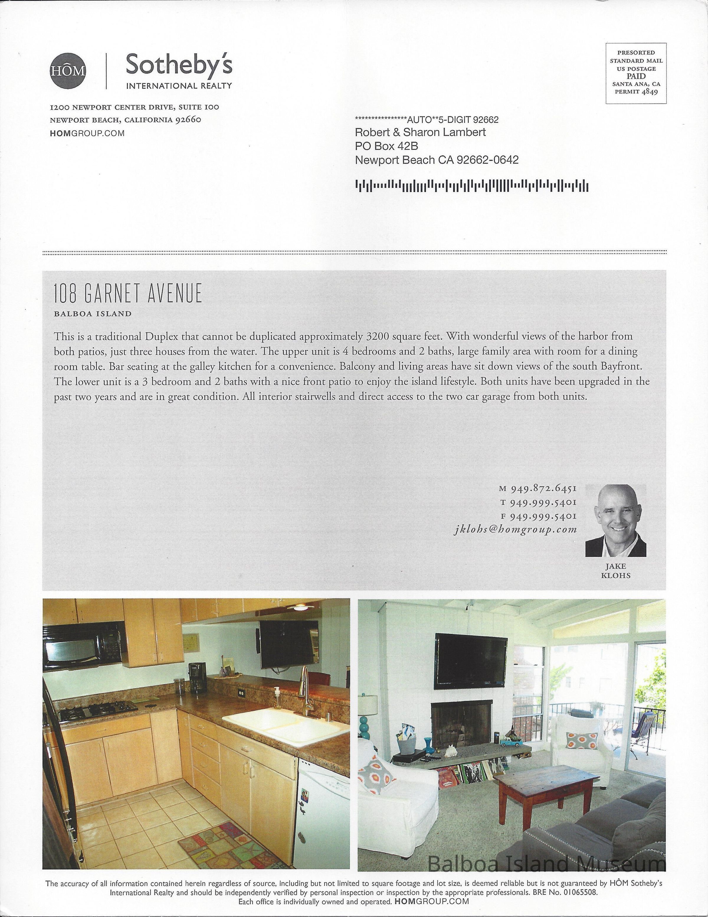 Advertisement showing home for sale at 108 Garnet Avenue.Lexicon