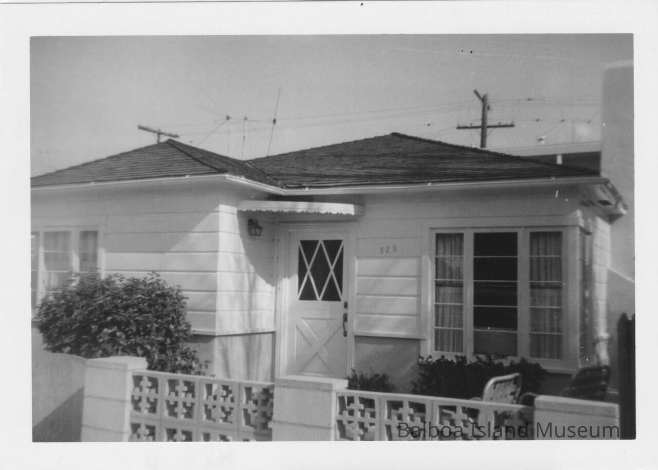 A scan of a black and white photograph of 220 Abalone Avenue. It was owned by the Thompson Family from 1964 to 1971.Photograph Details