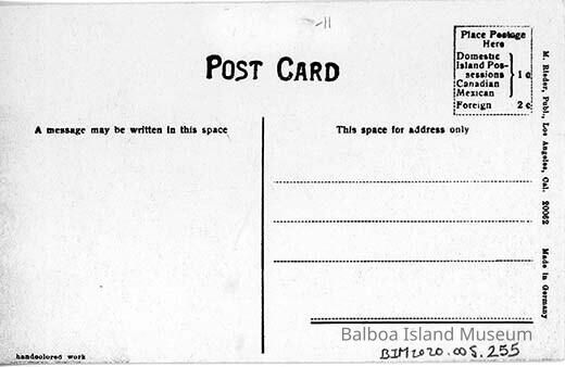Unused. Divided back. Published by M. Rieder in Los Angeles and made in Germany. Hand colored. Postcard number 20062. Stamp box is a semi solid line that reads "Place Postage Here Domestic, Island Possessions, Canadian, Mexican 1 cent Foreign 2 cent". Divided back.Subject