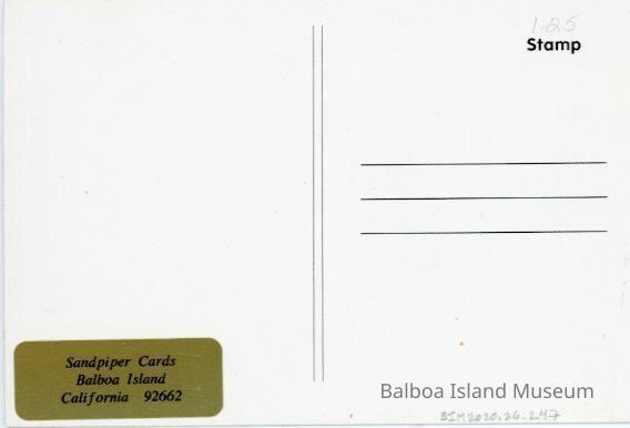 No publisher, printer, or photographer. Sold by Sandpiper Cards on Balboa Island.Subject