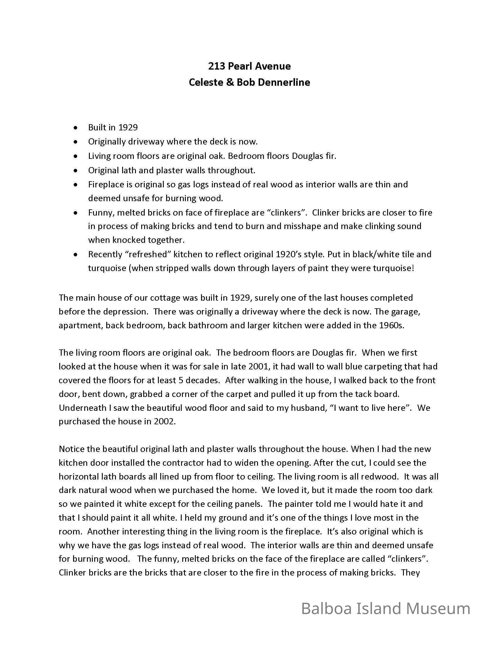 Color photo in front of home at 213 Pearl Avenue.Made/Created