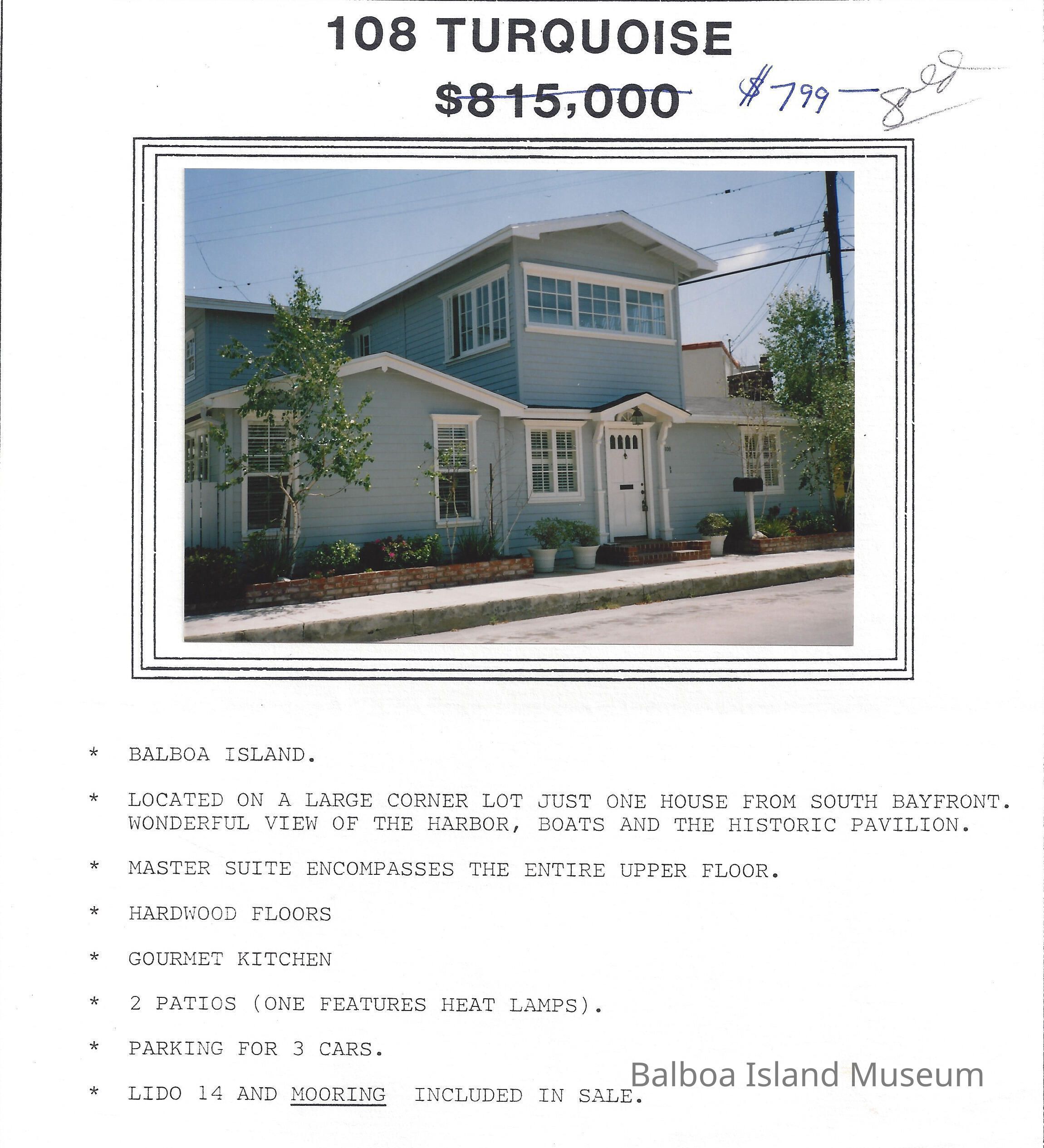 Real Estate brochure with color photo of home at 108 Turquoise Avenue.Lexicon