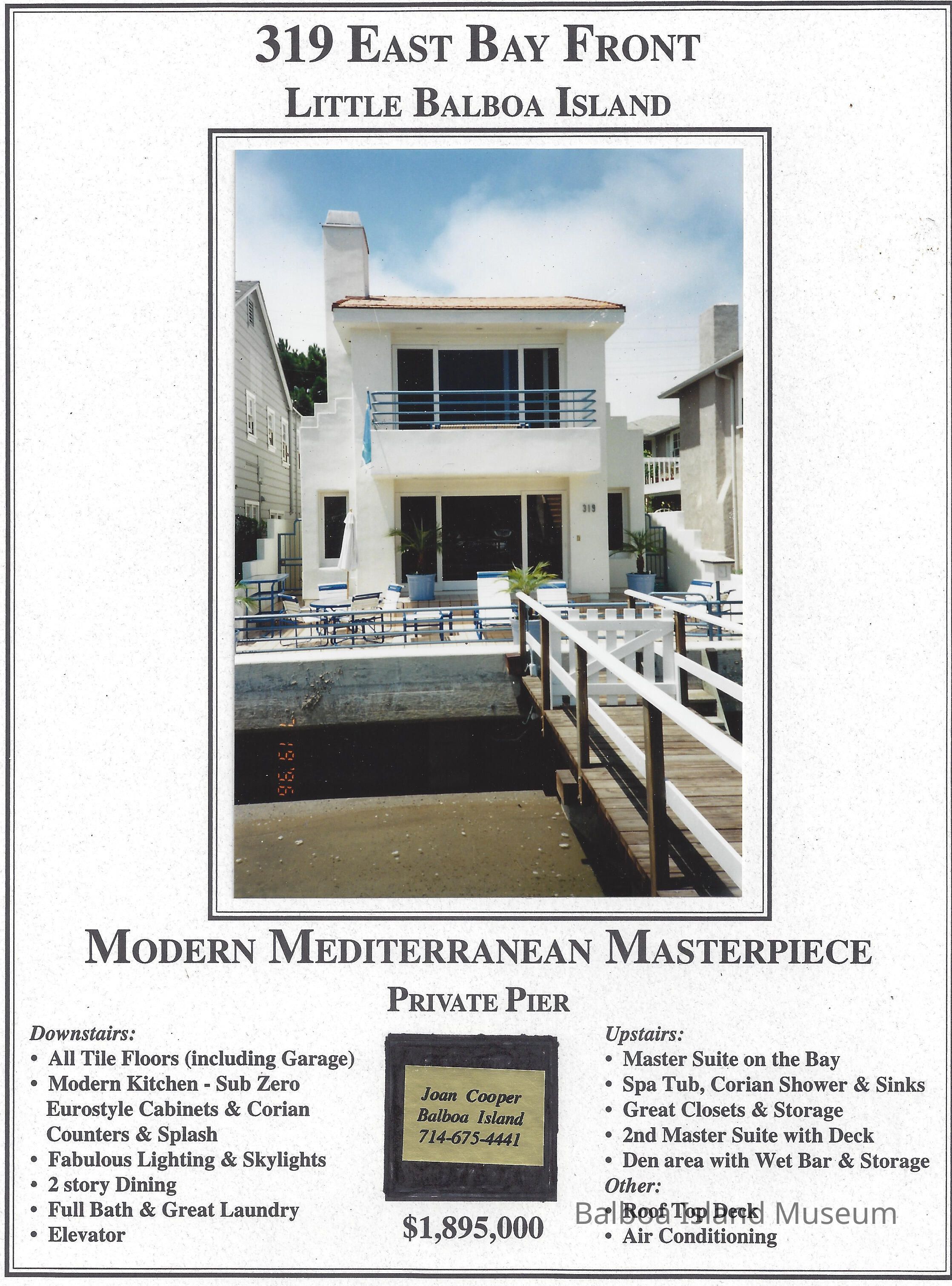 Real Estate brochure with color photo of home at 319 East Bayfront.Lexicon