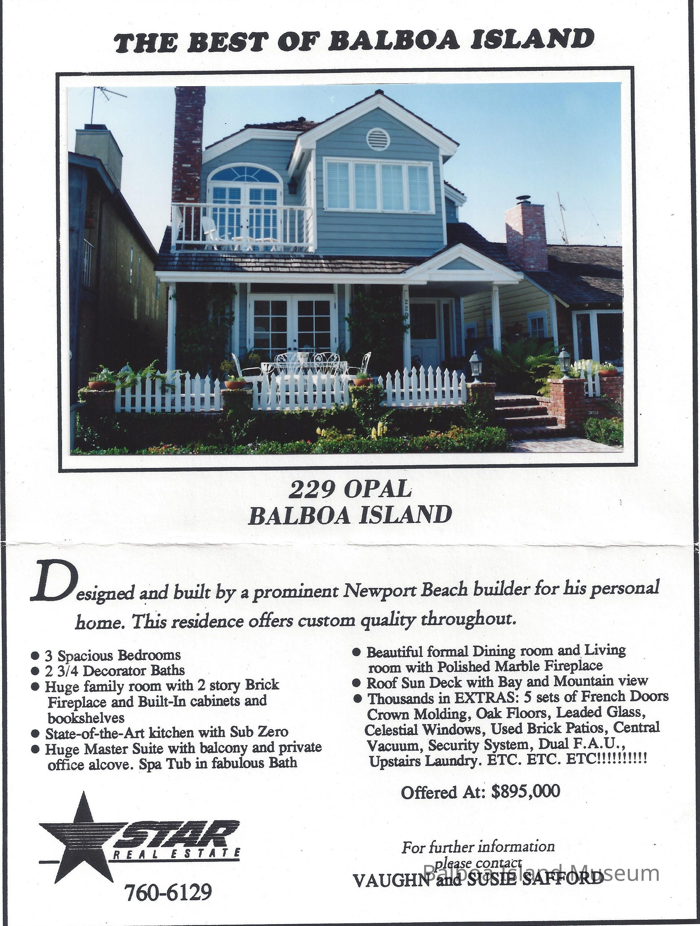 Real Estate brochure with color photo of home at 229 Opal Avenue.Lexicon