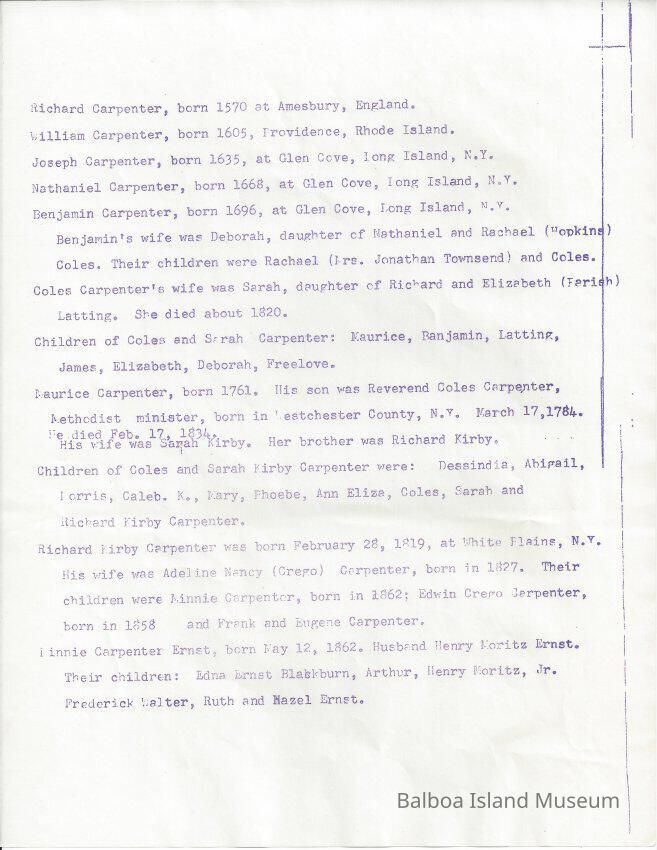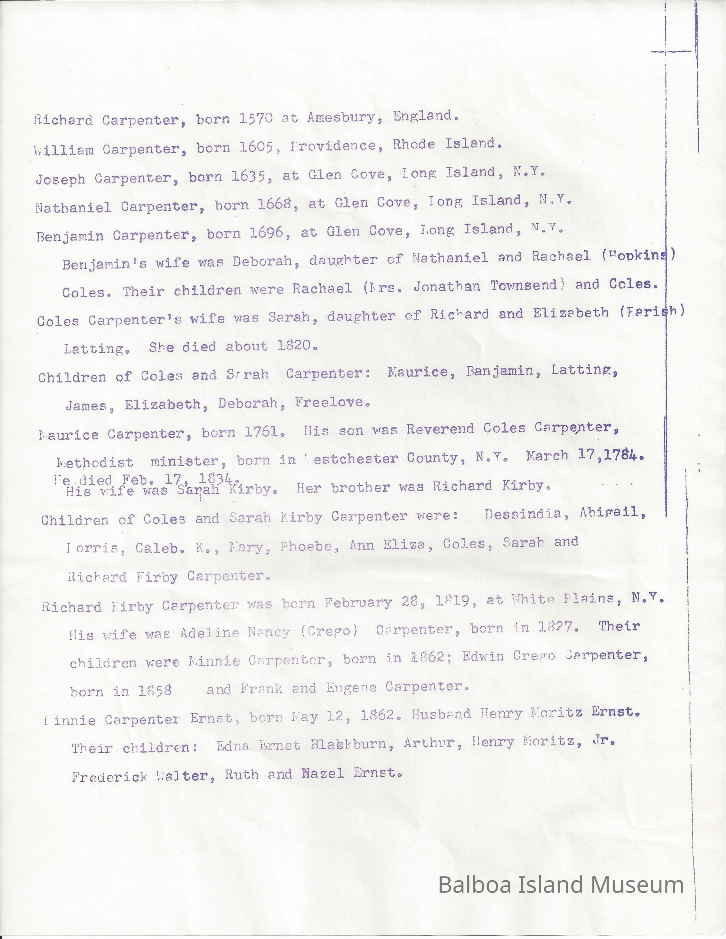 Family Genealogy for Carpenter FamilyEntry/Object ID