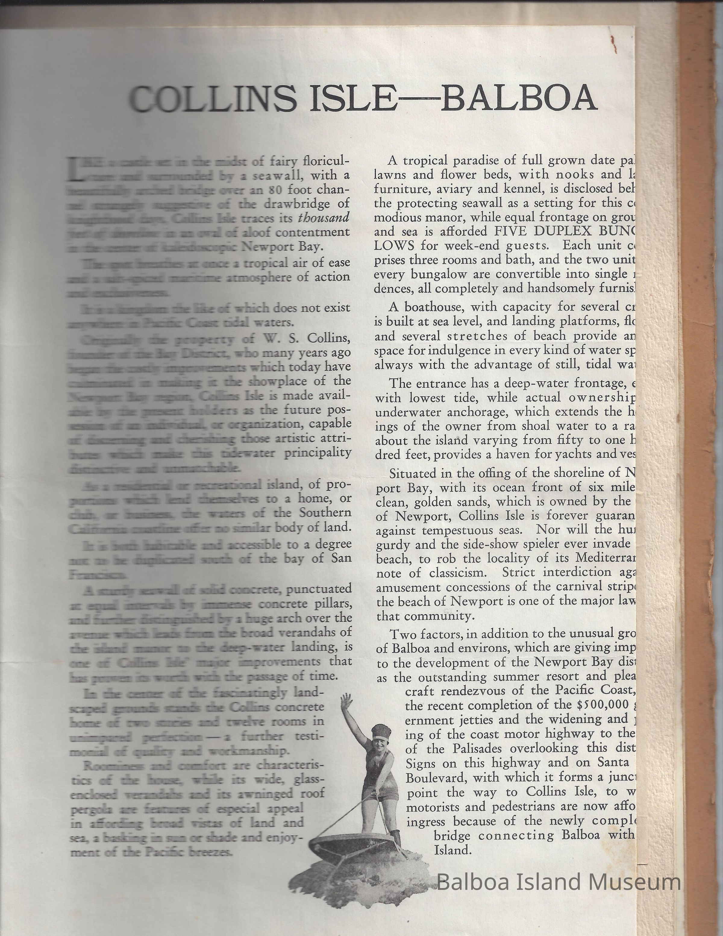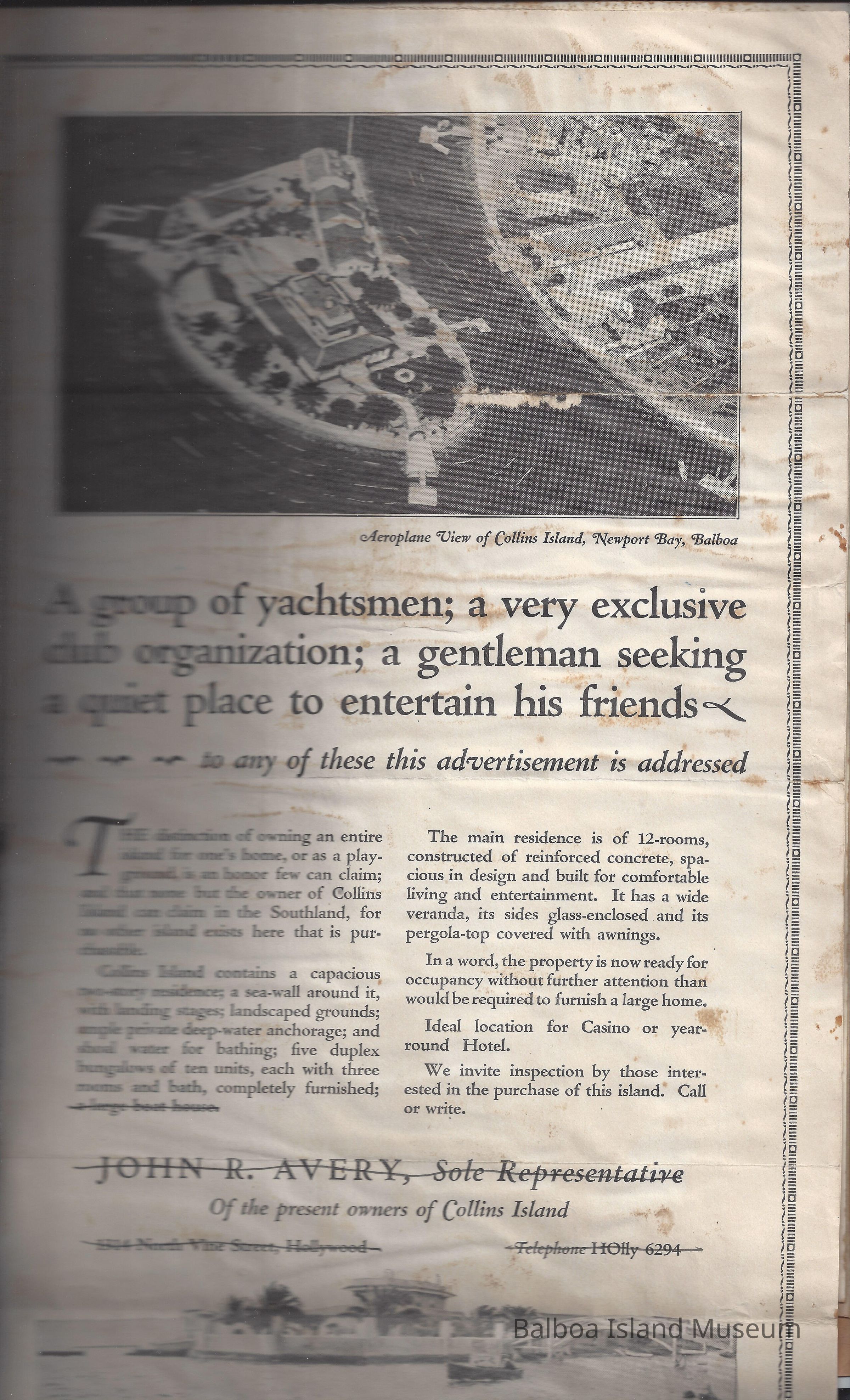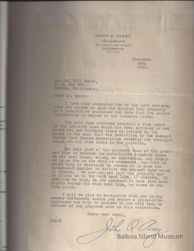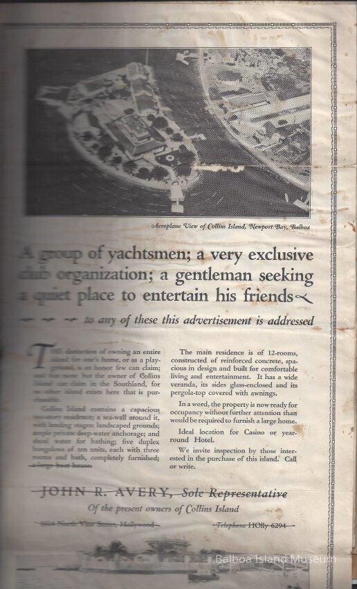 Sales presentation book created by Hal Will Smith for purchase of Collins Island for $45,000. Includes description of the island, its buildings, tax information, projected harbor development, maps, articles, etc.Collection