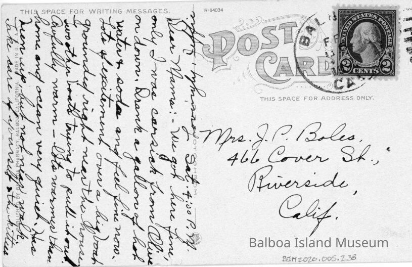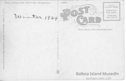 The card was published by the Balboa Pharmacy in Balboa and made in the US by Curteich-Chicago company. The print number on two of the cards and possibly the third is R-84034. Divided back. Stamp box is a triple border with "Place Stamp Here Domestic One Cent Foreign Two Cent" inside.