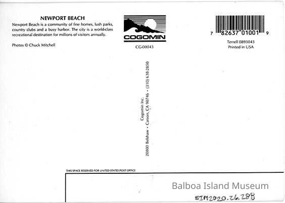 Unused. Published by Cogomin Inc. in Carson, California. Printed by Terrell Publishing Company. Photograph by Chuck Mitchell Postcard number CG-00043, printer number Terrell 0893043.Subject