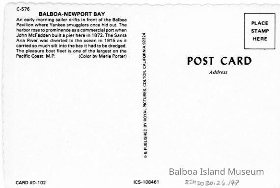 Published by Royal Pictures. Photograph by Merle Porter. Postcard numbers C-576 & Card #D-102. Printer number ICS-108461Subject