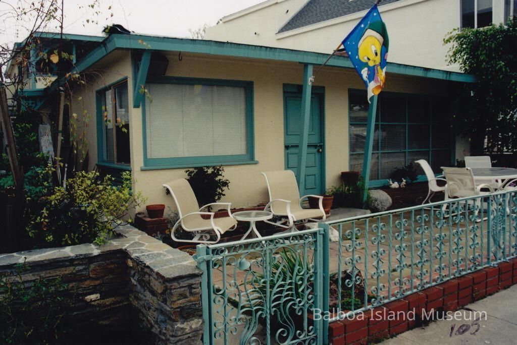 Color photo in front of home at 105 North Bay Front taken at an unknown time. Likely taken in the 90s. The house is still there, though it has been painted as of 2019.Made/Created