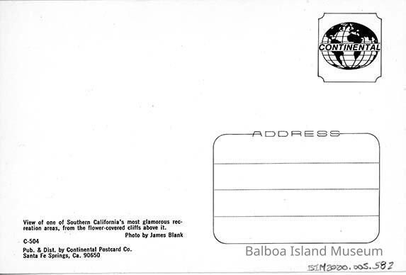Photographed by James Blank. Published by Continental Postcard Co. in Santa Fe Springs, California. Postcard number C-504.Subject