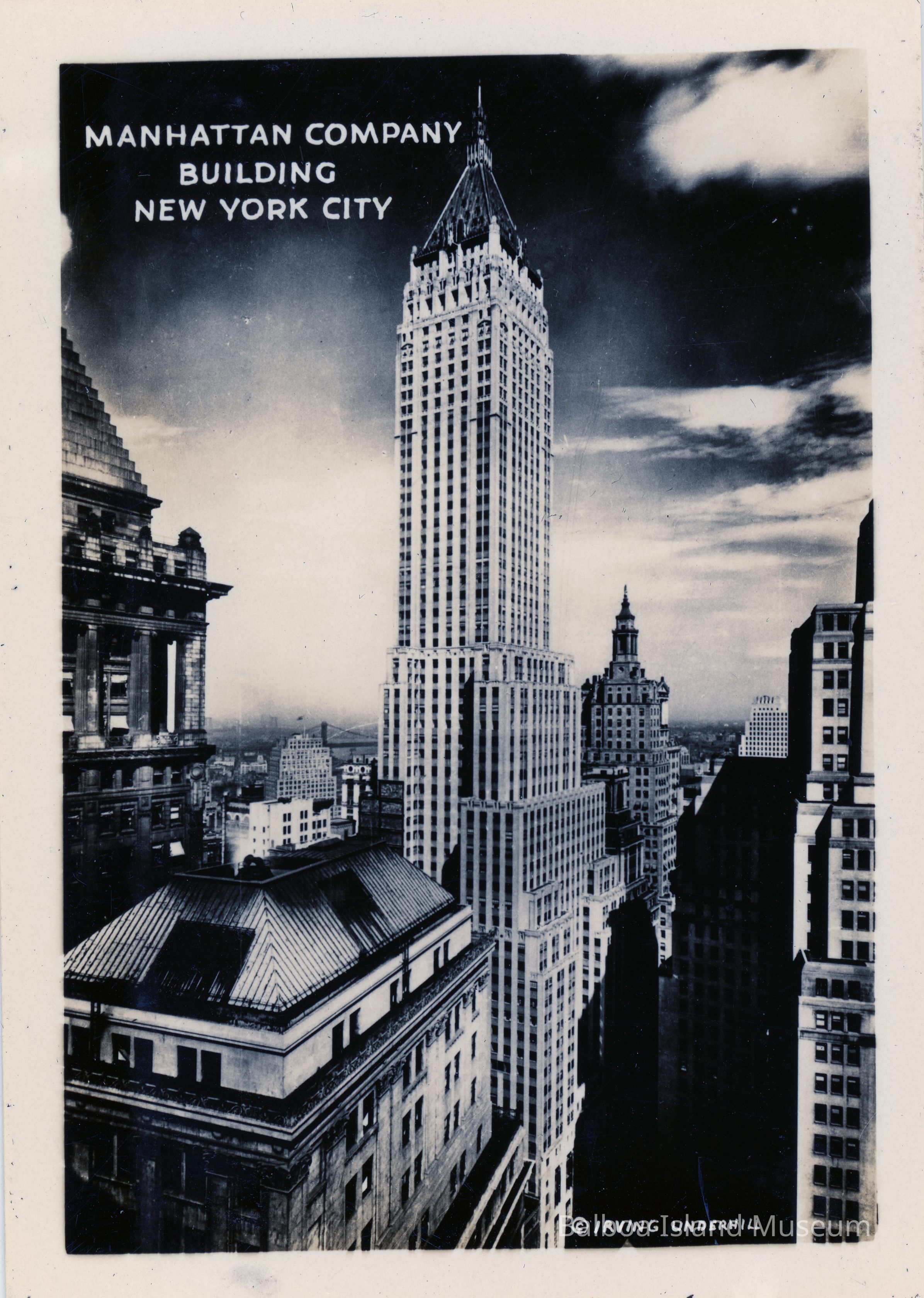 Postcard style photograph of the Manhattan Company Building but the image is only in a postcard style formatPhotograph Details