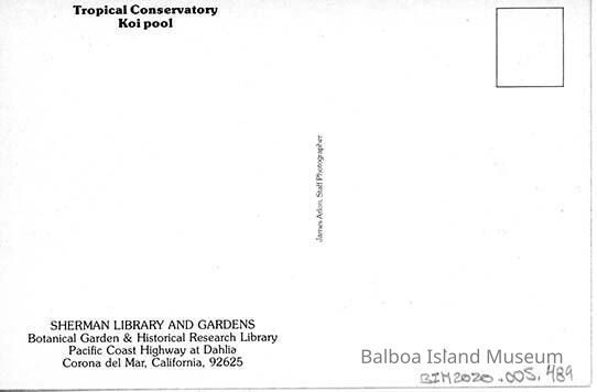 Unused. Published by Sherman Library & Gardens. Photograph by James Arlon.Subject