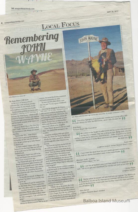 Newport Beach Indy Newspaper - John Wayne - May 26, 2017Entry/Object ID