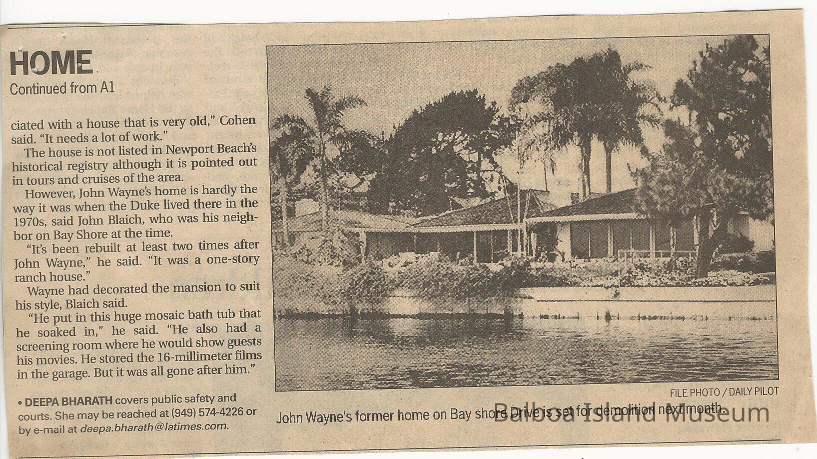 John Wayne Home Daily Pilot Newspaper ClippingsEntry/Object ID