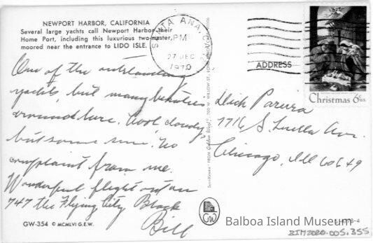 One sent and one unused. The sent postcard was mailed from Santa Ana on Dec. 27, 1970 to Chicago, Ill. It was sent to Dich Pareira from Bill.