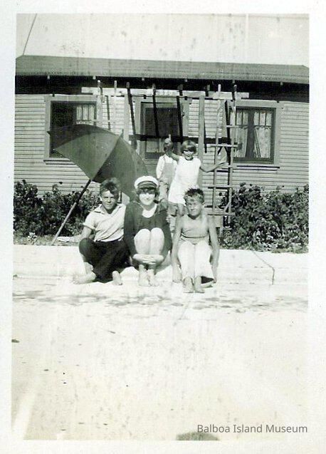 1927 Balboa Island, 220 Onyx Ave. The people in the photograph are as follows: back row, Dolly Perry; Front row, Paul Perry, Louis Perry, Robert Perry.Lexicon