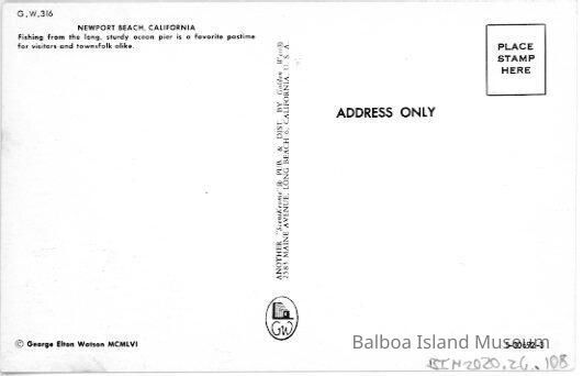 Published by Golden West of Long Beach. Photographed by George Elton Watson. Postcard number GW 316. Printer number S-30692-3.Subject