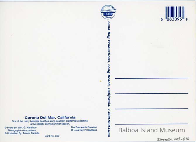Unused. Published by Luna Bay Productions. Photograph by William G. Hartshorn and illustrations by Trenna Daniells. Barcode stamp box. Card No. C23.