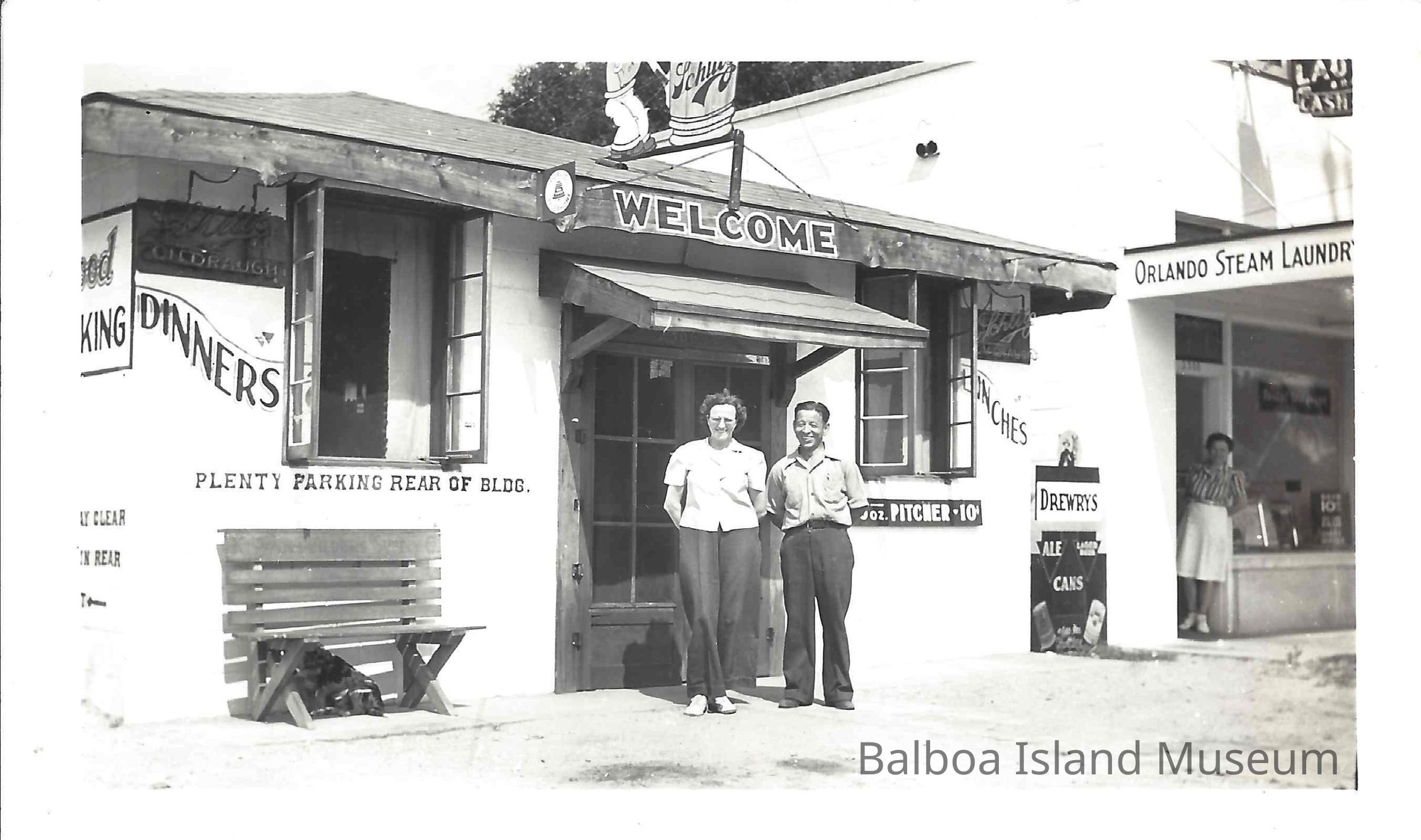 Herman Pulaski and Frances in front of the Rolly Tavern in Florida.Photograph Details