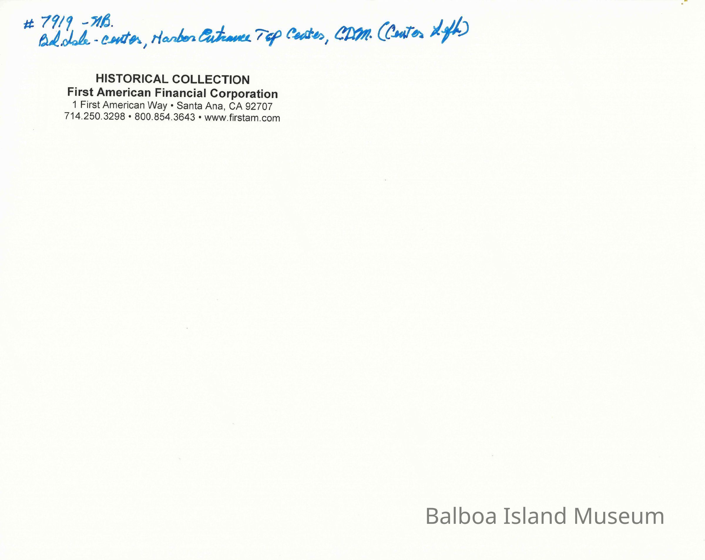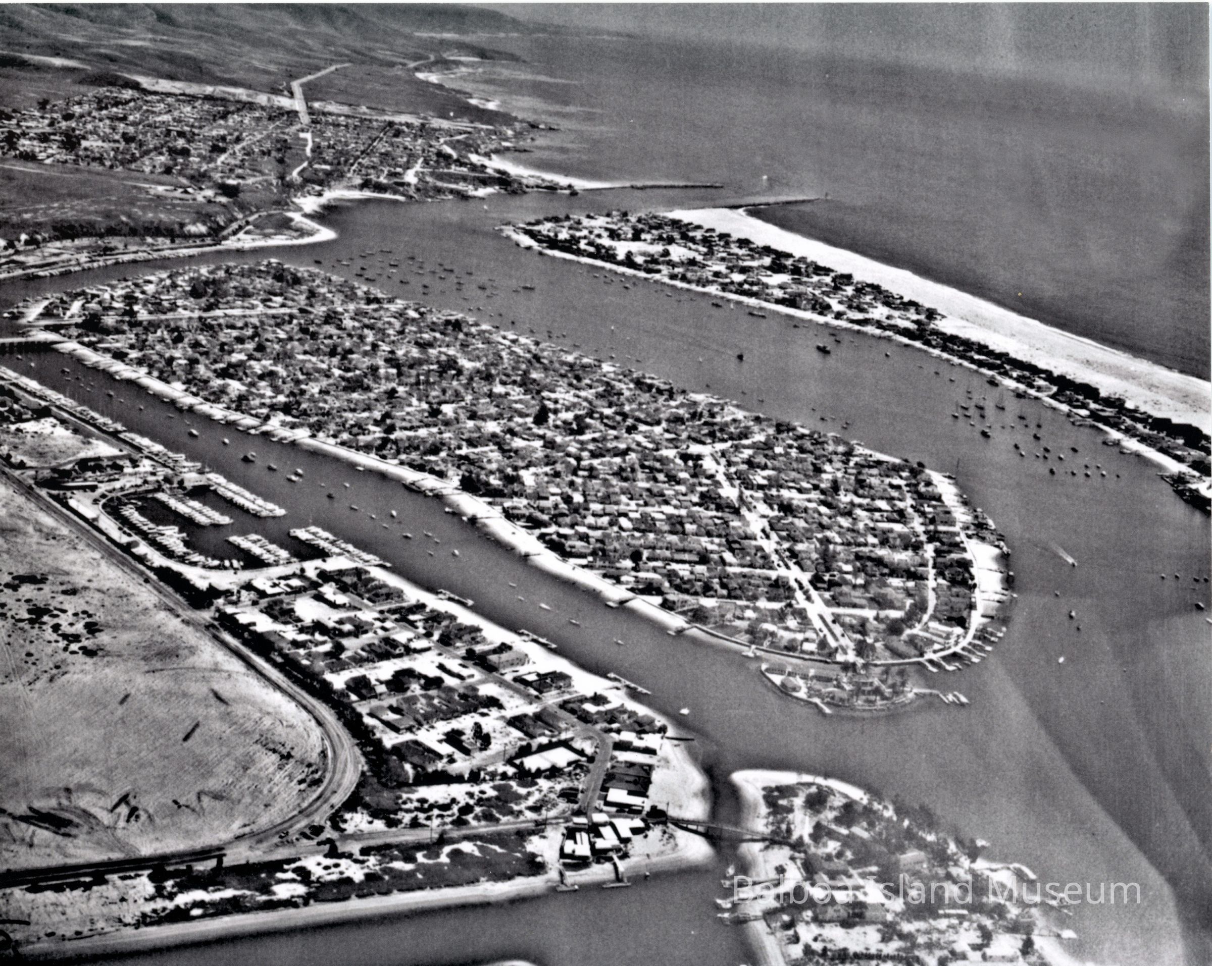 Arial view of Balboa Island and Harbor entrance. "#7919-N.B."Collection