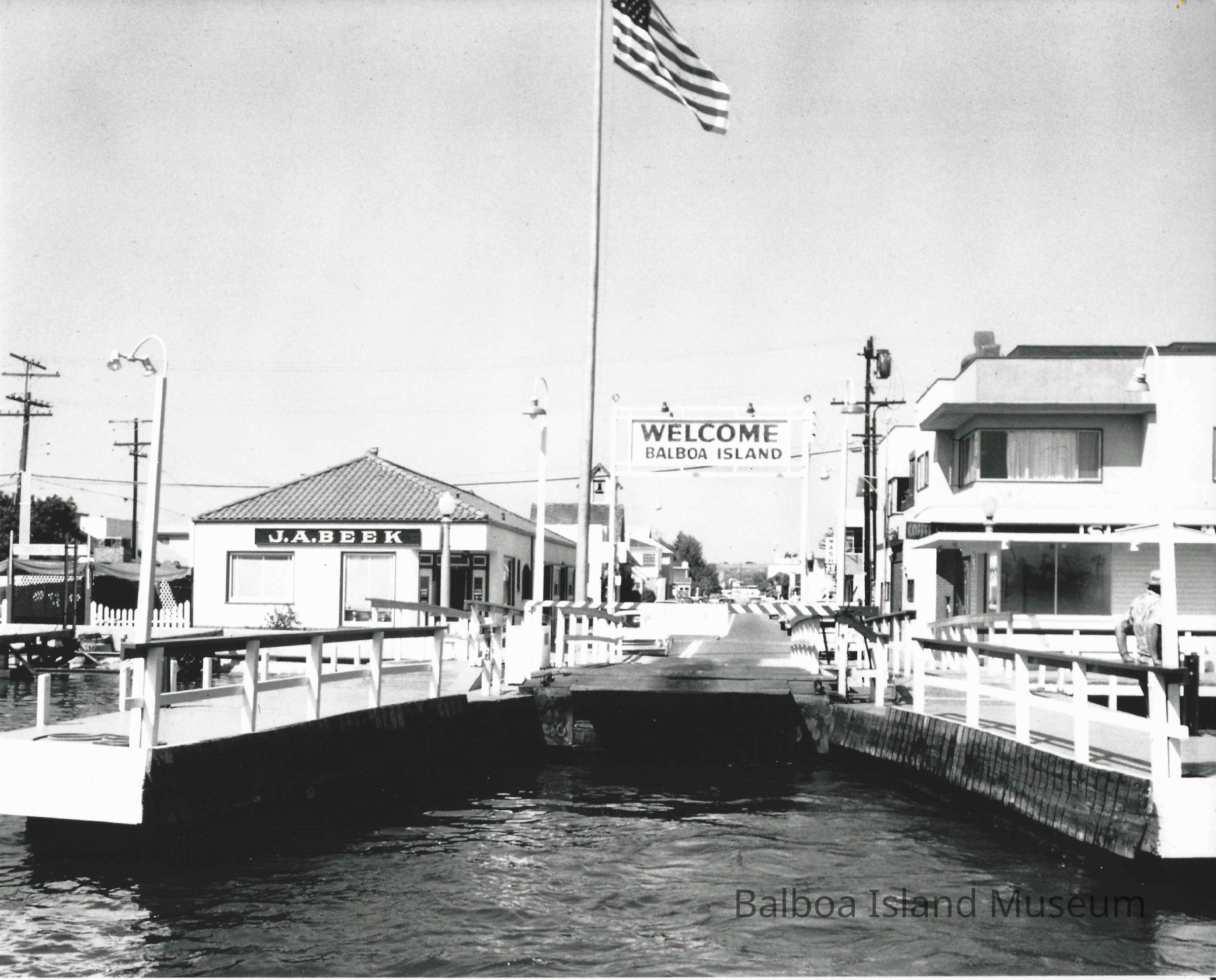 Welcome sign and port, entrance for ferry on Balboa Island. "#6558-N.B."Collection