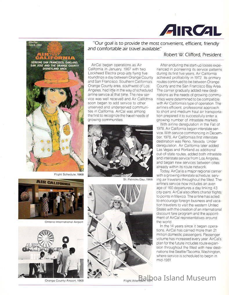 Travel Brochure from Air California describing it's history beginning in 1967Photograph Details
