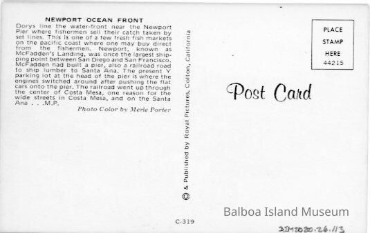 Published by Royal pictures in Colton. Photographed by Merle Porter. Postcard number C-319.Subject