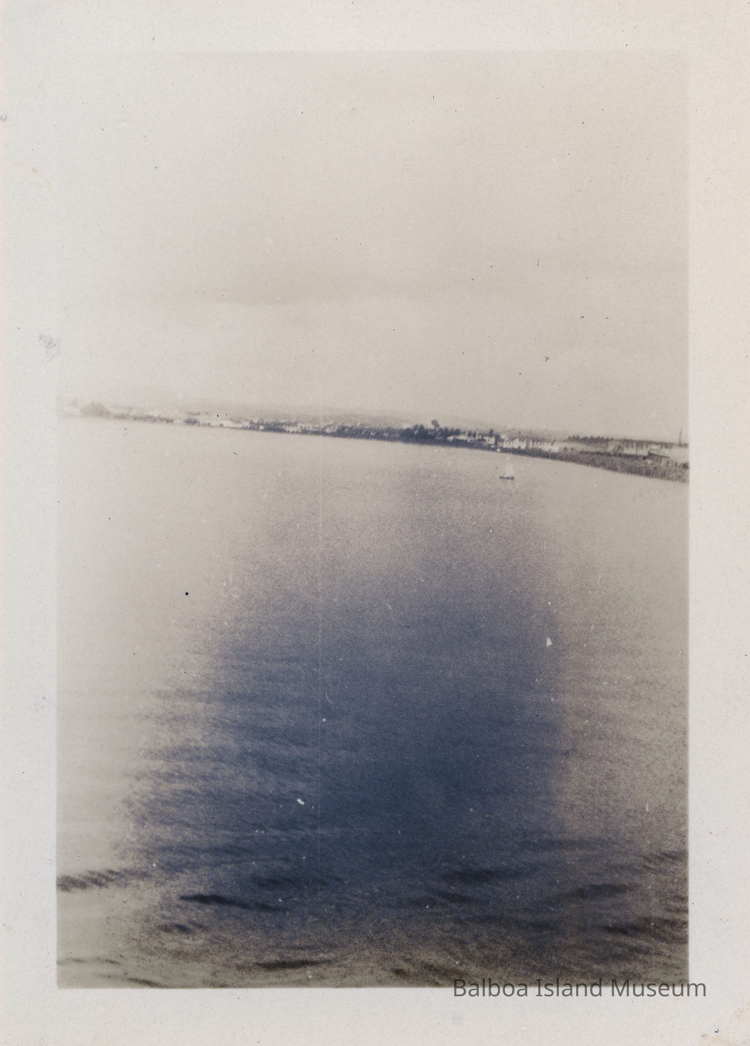 Photo from the water looking to shore with a sailboat on the rightPhotograph Details