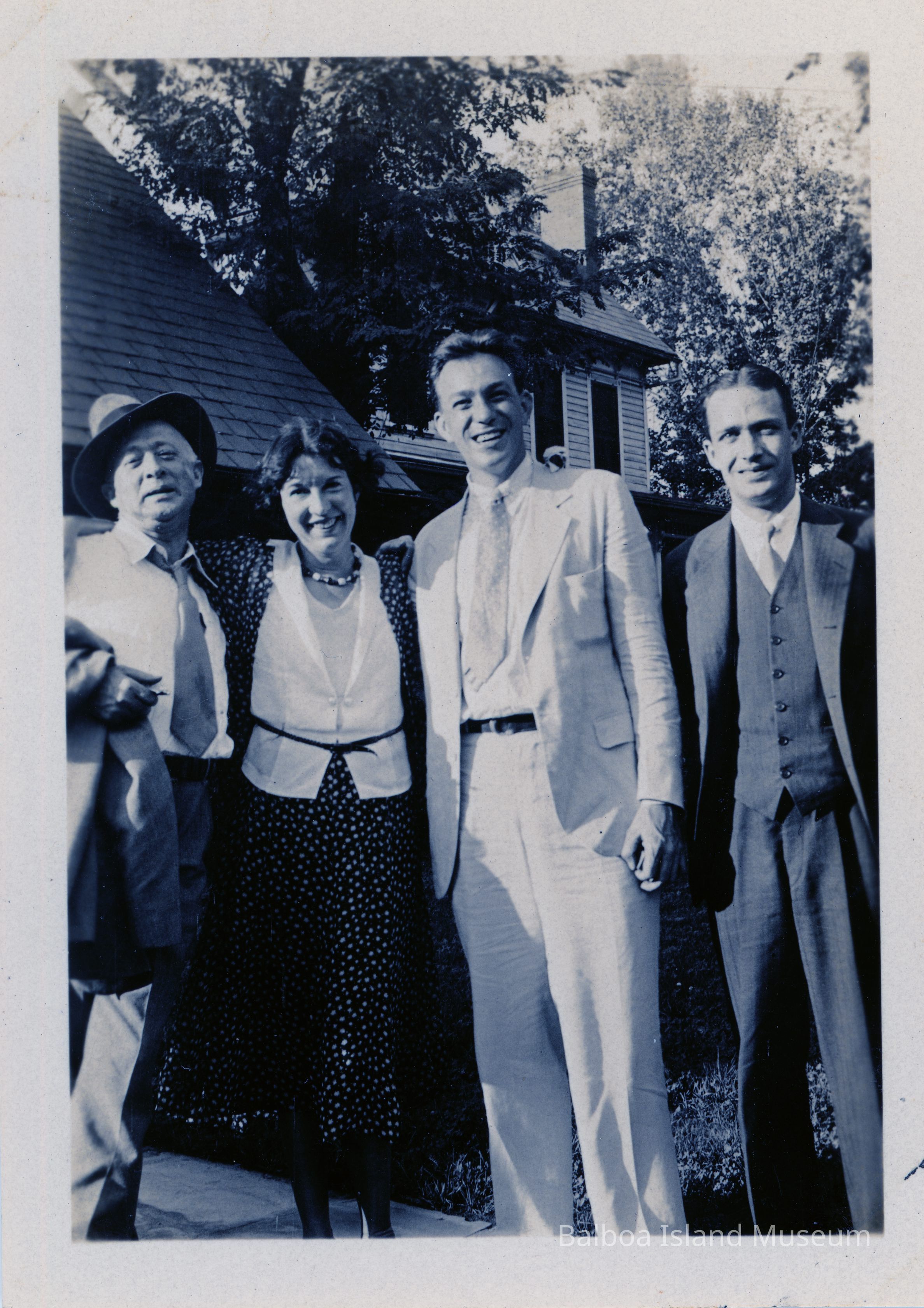 Photo of four people, three men all in suit and ties and one woman in a poke-dot dressPhotograph Details
