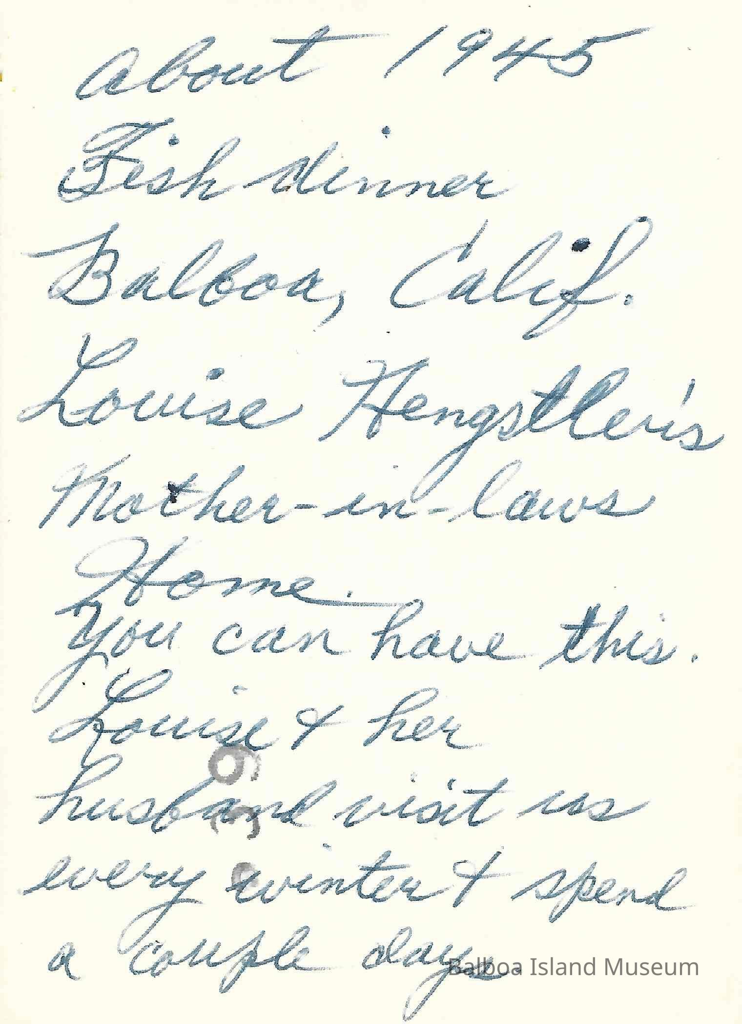 Fish Dinner on Balboa Island, 1945Entry/Object ID