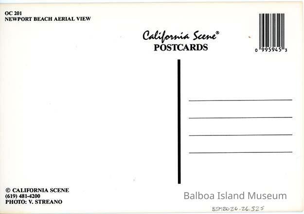 Unused. The back has a barcode instead of a stamp box. Published by California Scene. Photograph by V. Sterano. Postcard number OC 201.Subject