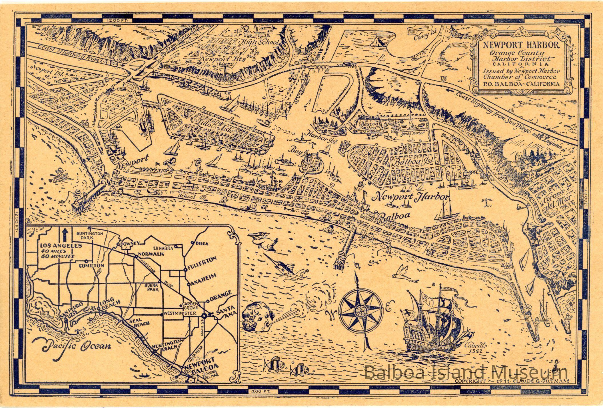 map, Claude Putnam, Newport Beach, World War IISubject Place