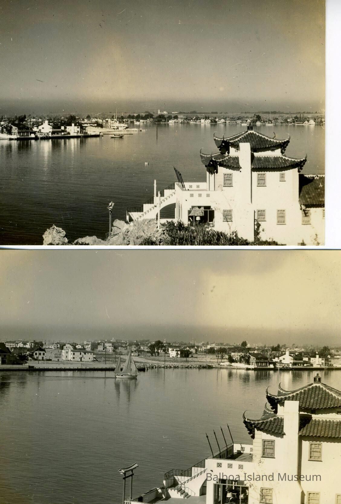 Photo of the China House in the 1930's. Balboa Island and Newport Harbor High School are in the background of the top photo.Collection