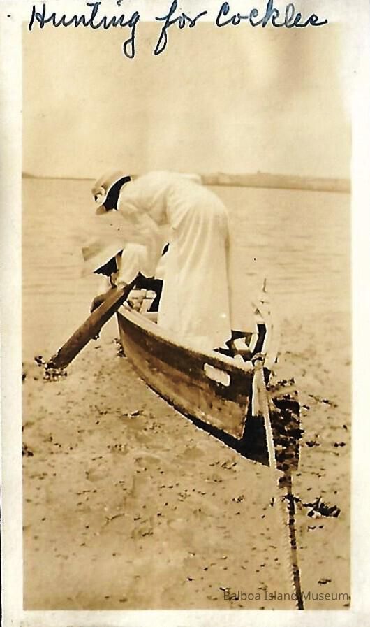 Helen and Maragret hunting for cockles in a boat.Collection