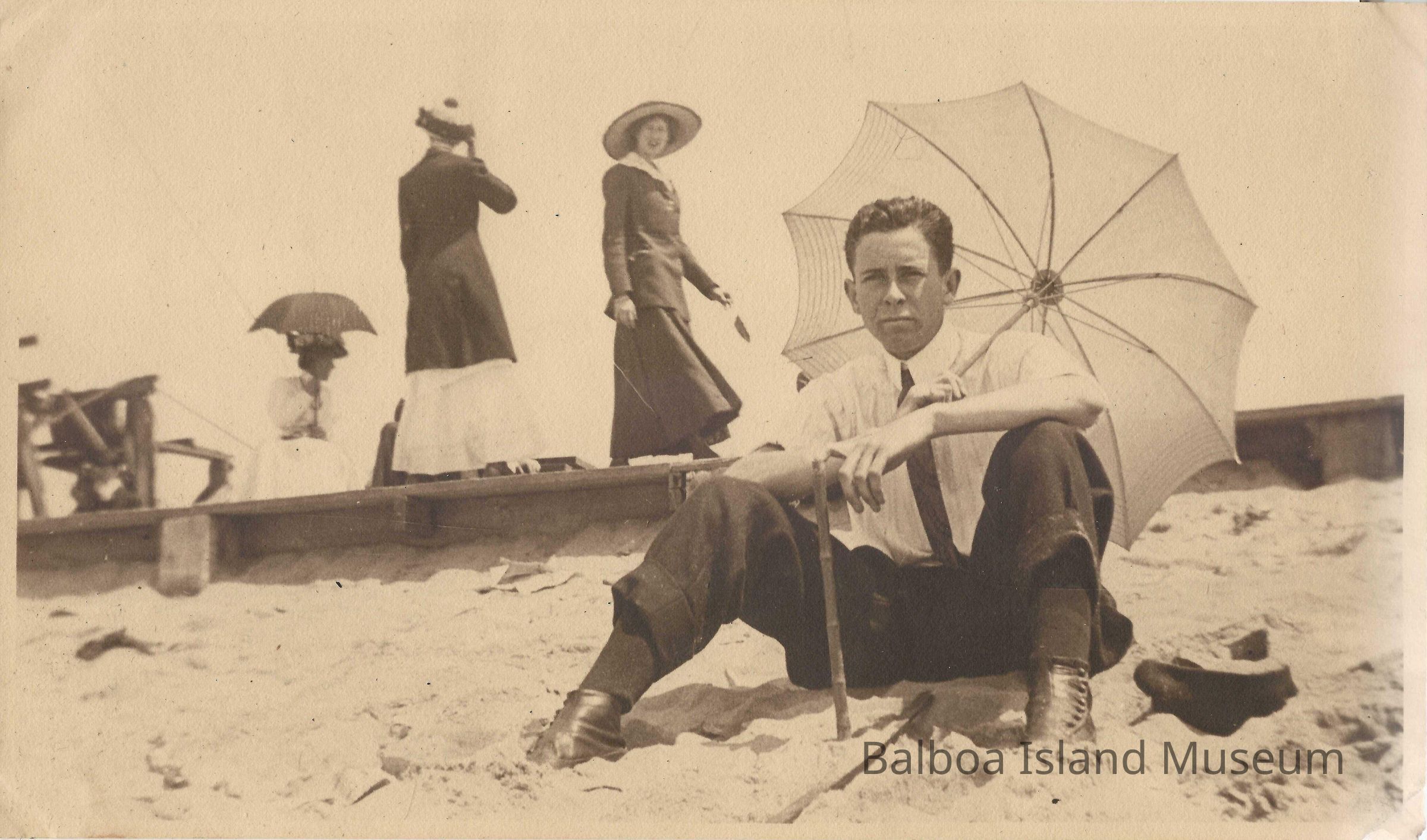 A photo of a man on the beach. Dated July 4th, 1911.Collection