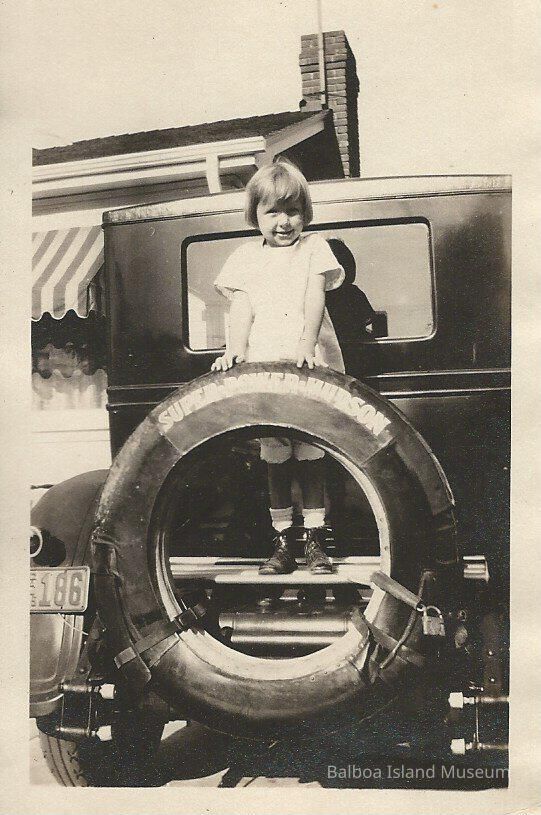 Photo of Charlotte Gordon (Stentz) as a child on a car.Collection