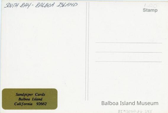 No publisher, printer, or photographer. Sold by Sandpiper Cards on Balboa Island."Subject