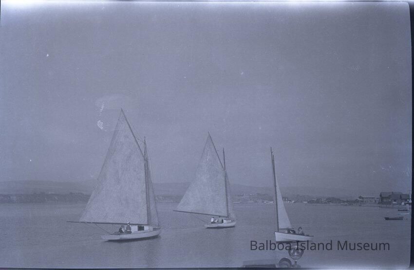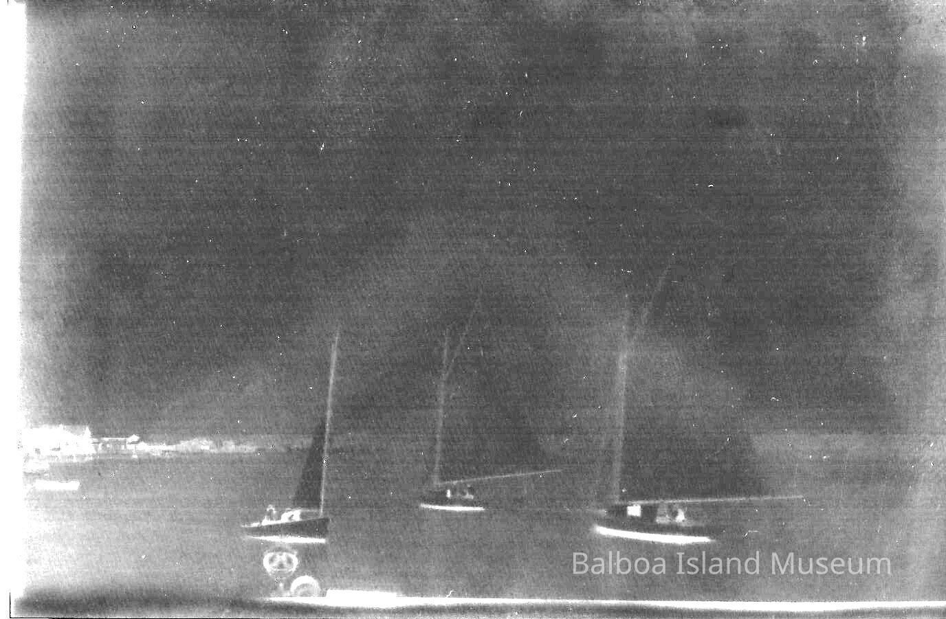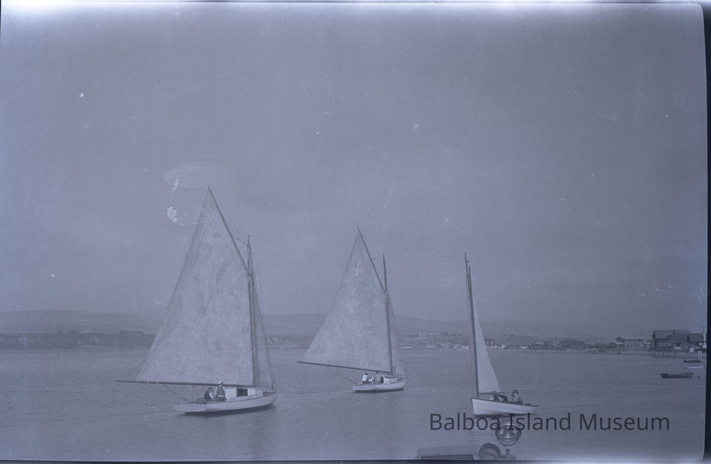 Photograph negative. The image is of three sailboats, one of which is named The Wave. The Wave belonged to the Smith Family.