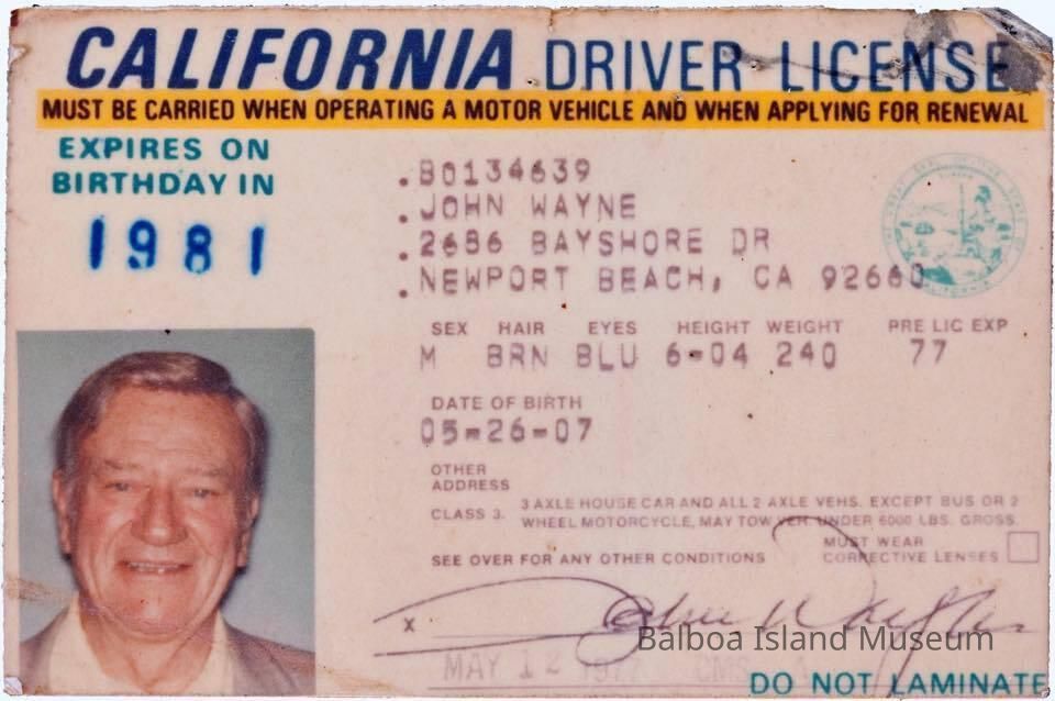 His California driver's license. Current Bid: $5,200 at the John Wayne Auction by Heritage Aurctions.