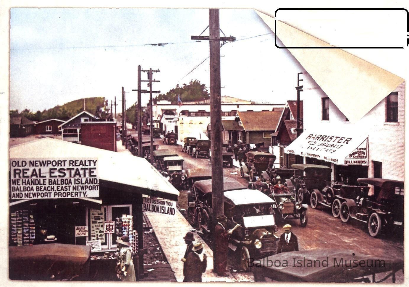 Newport Beach Real Estate Buisiness and a busy street. Image has a black rectangular outline in top right corner.